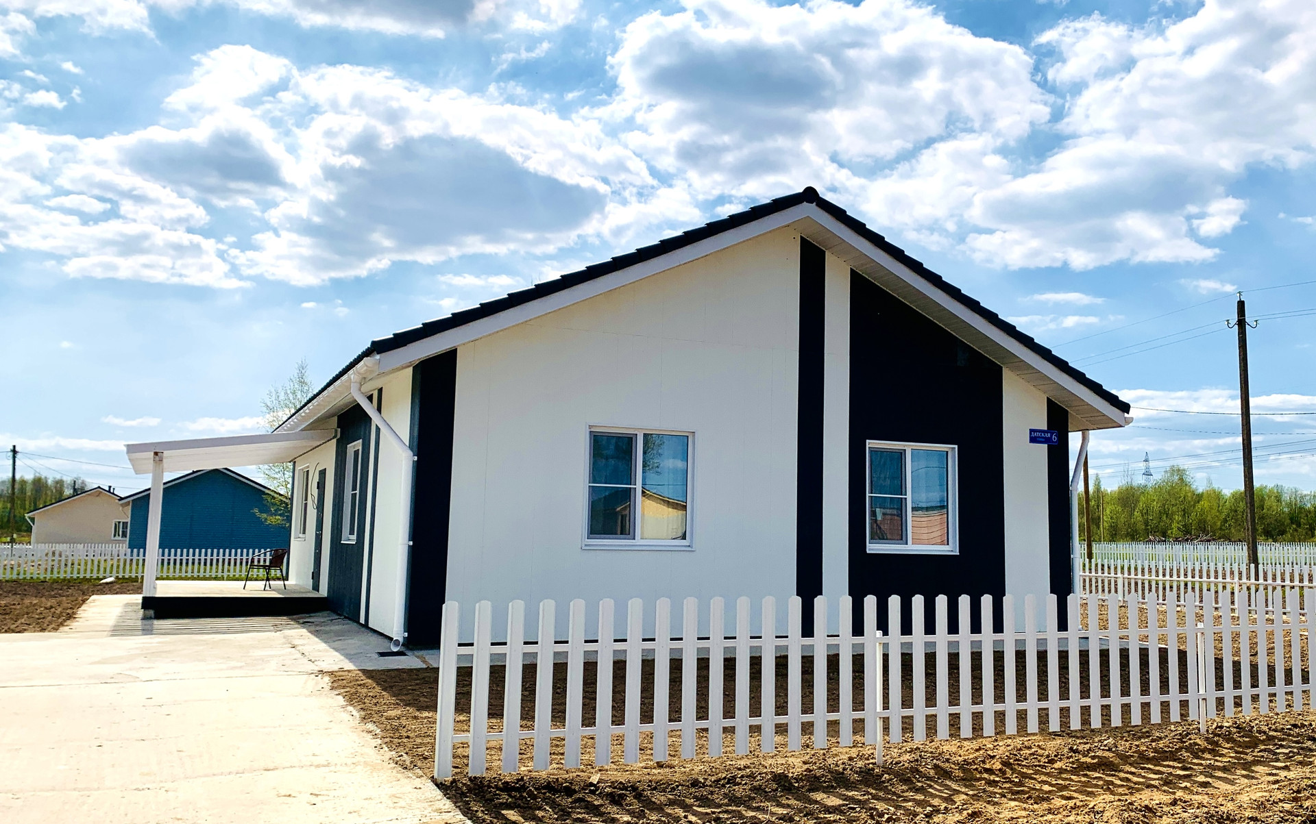- дома и заборы в едином стиле поселка