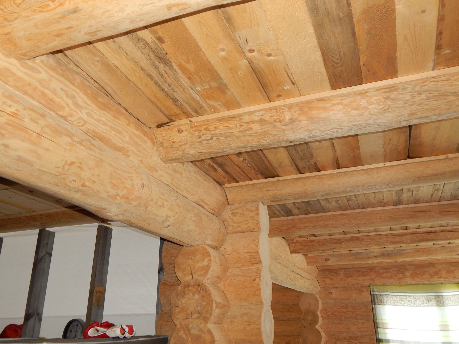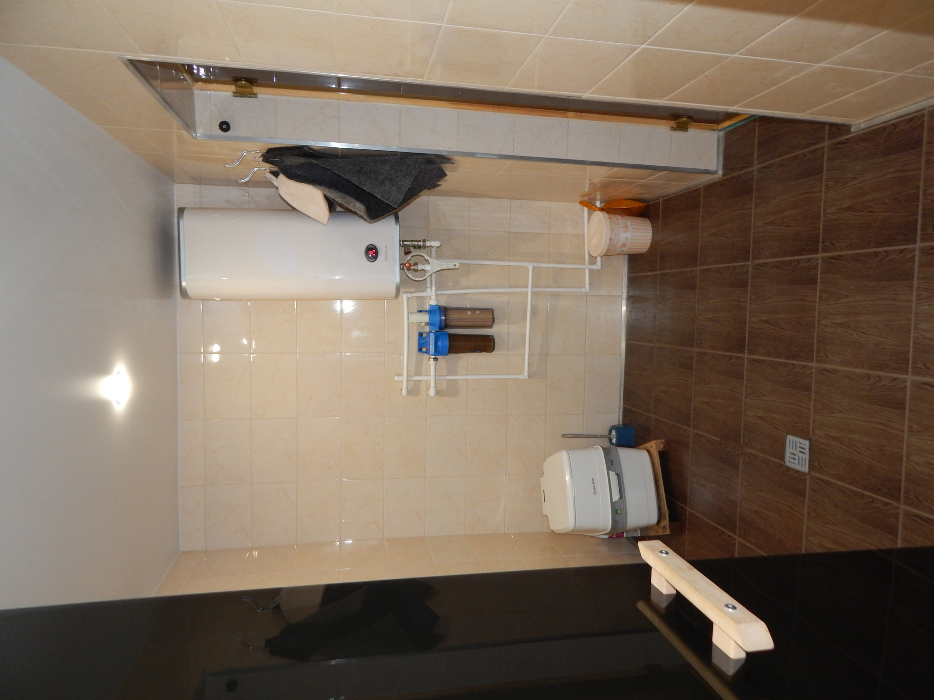 Натяжной потолок в комнате и в моечной.
