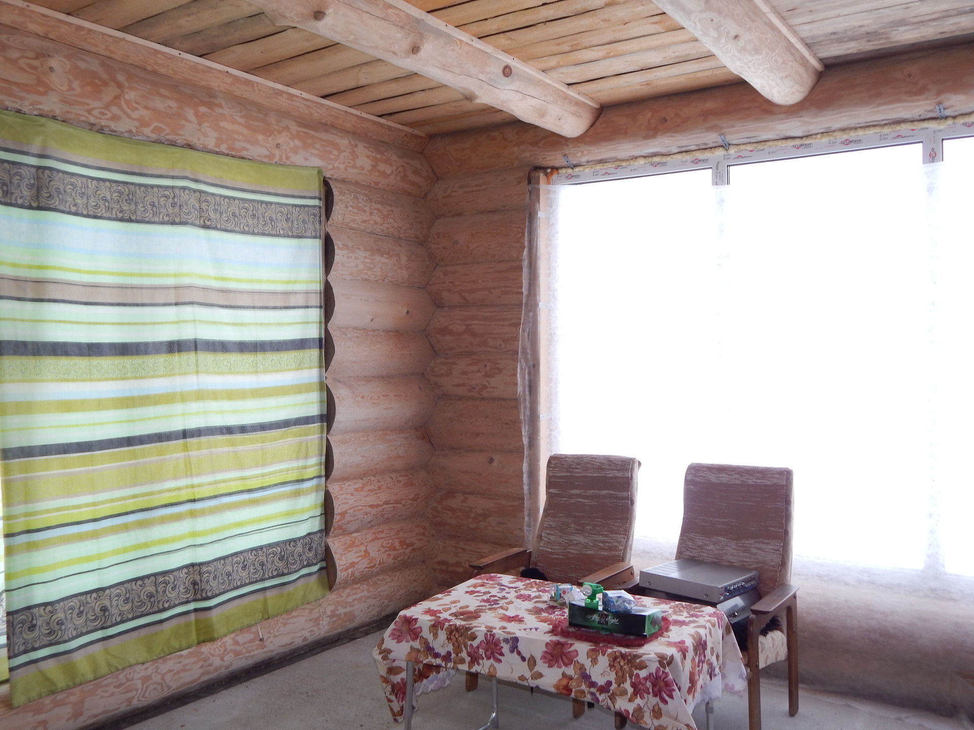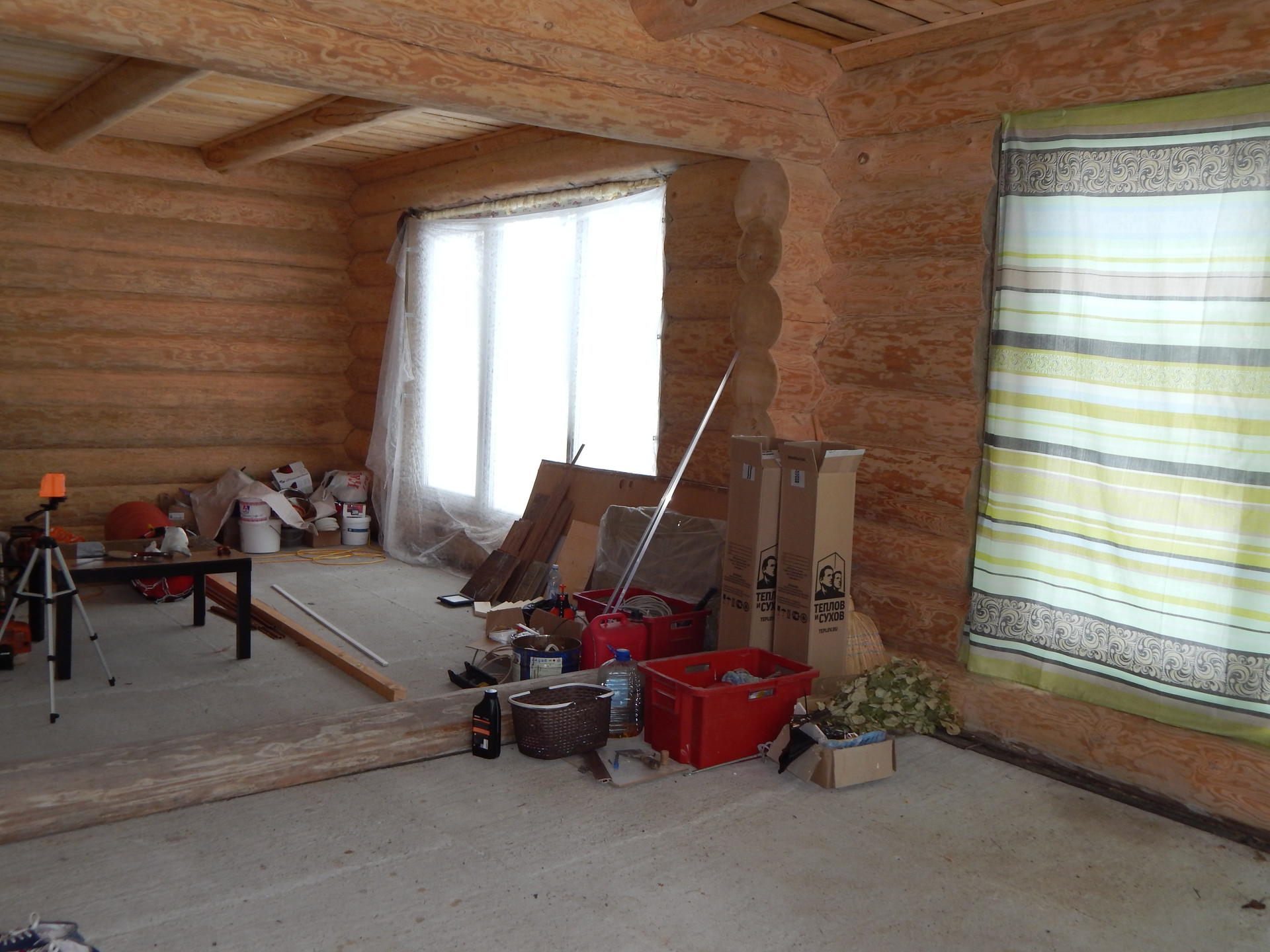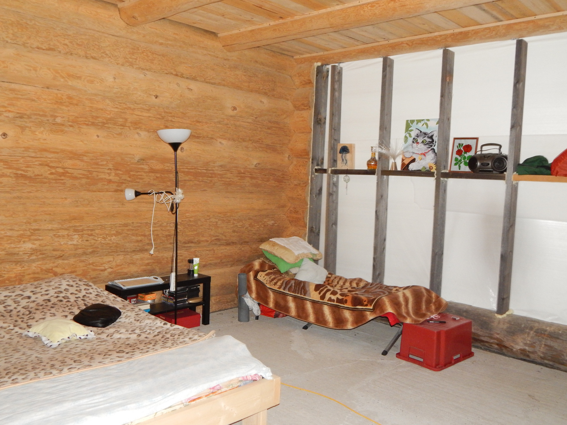 Дом : ручная рубка , два этажа. Установлен на бетонной плите.