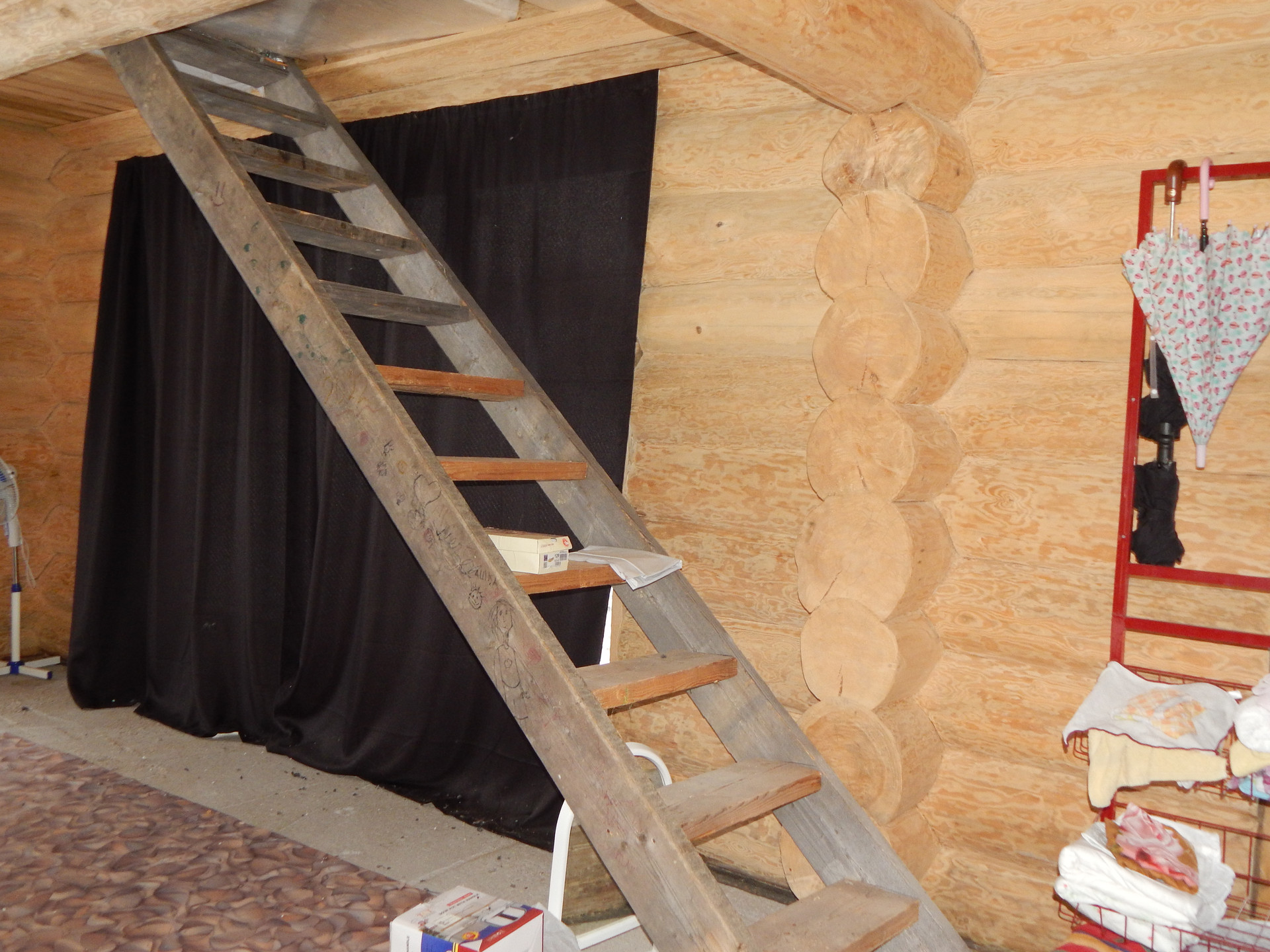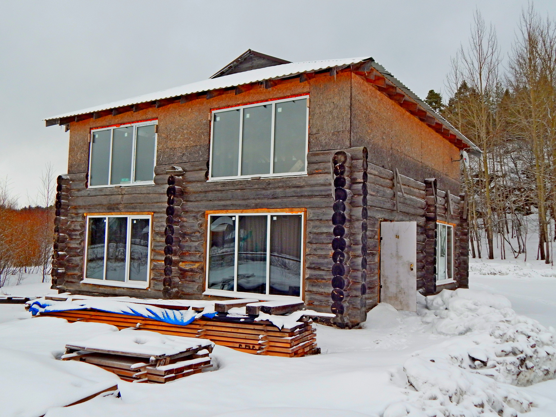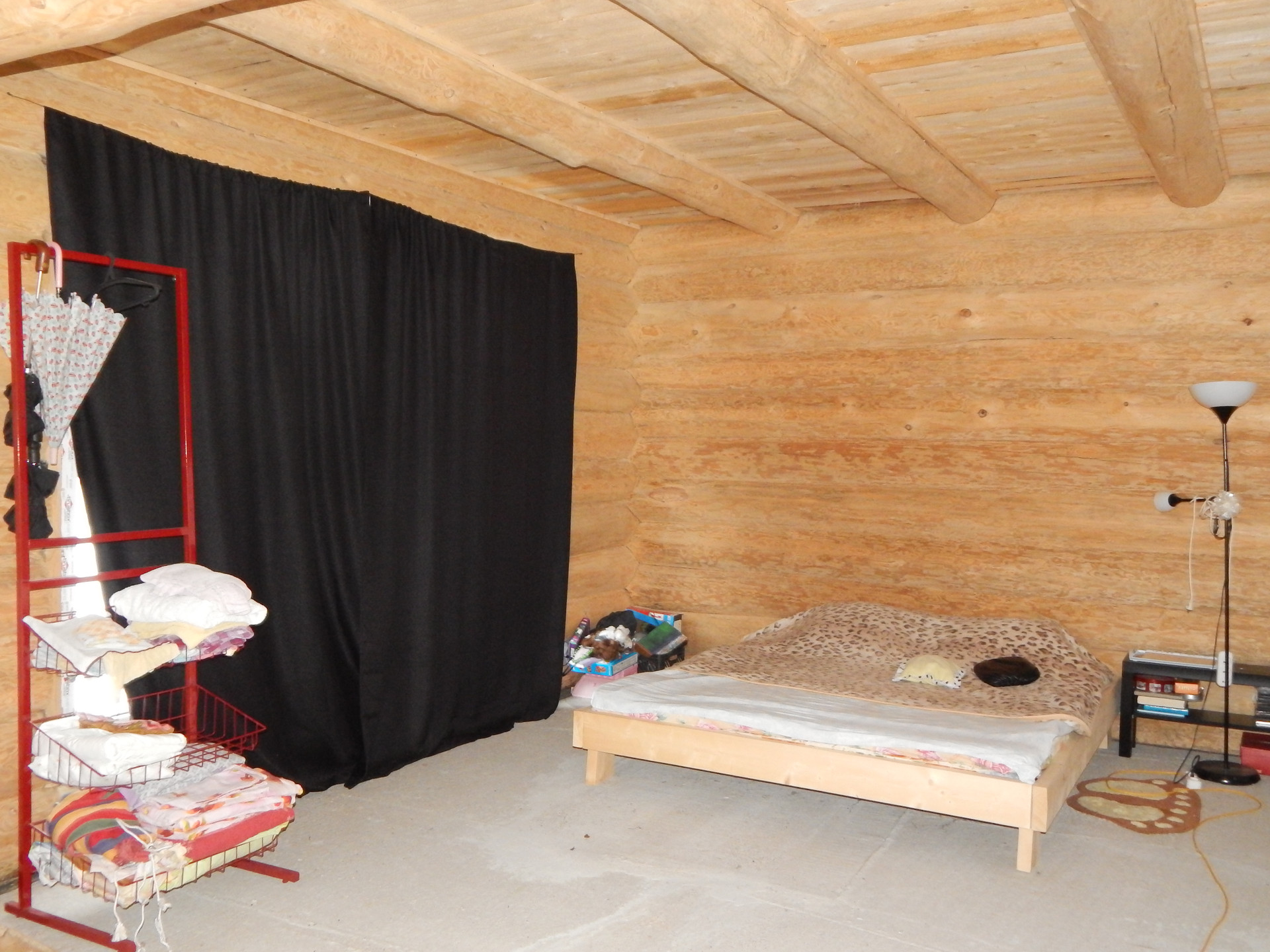 Дом : ручная рубка , два этажа. Установлен на бетонной плите.