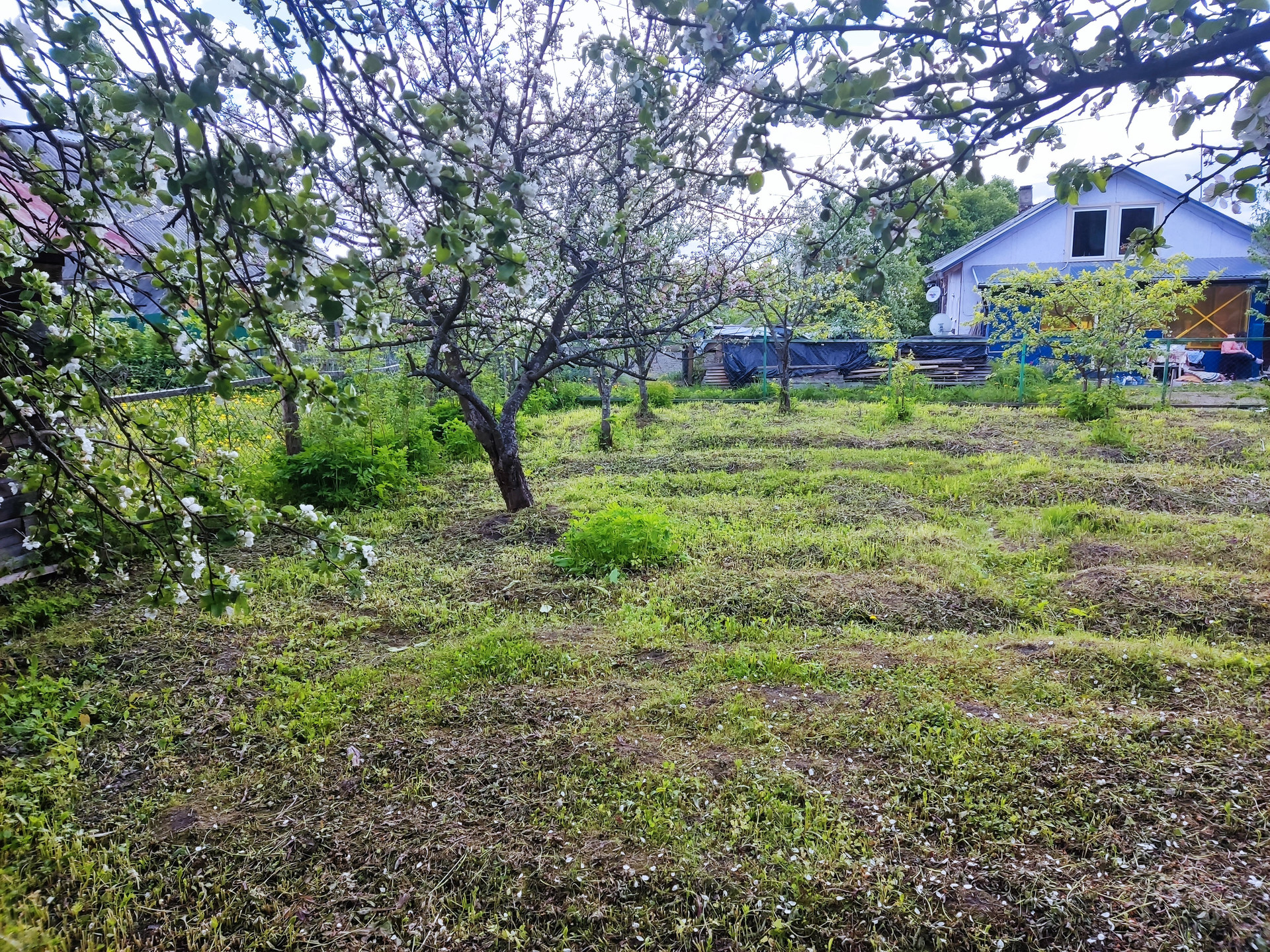 Достался в наследство, в собственности более 5 лет. Дом на две семьи со входами с разных улиц. Общая площадь нашей половины дома 63м2, по фасаду 7 м. и 9 метров в глубину участка.