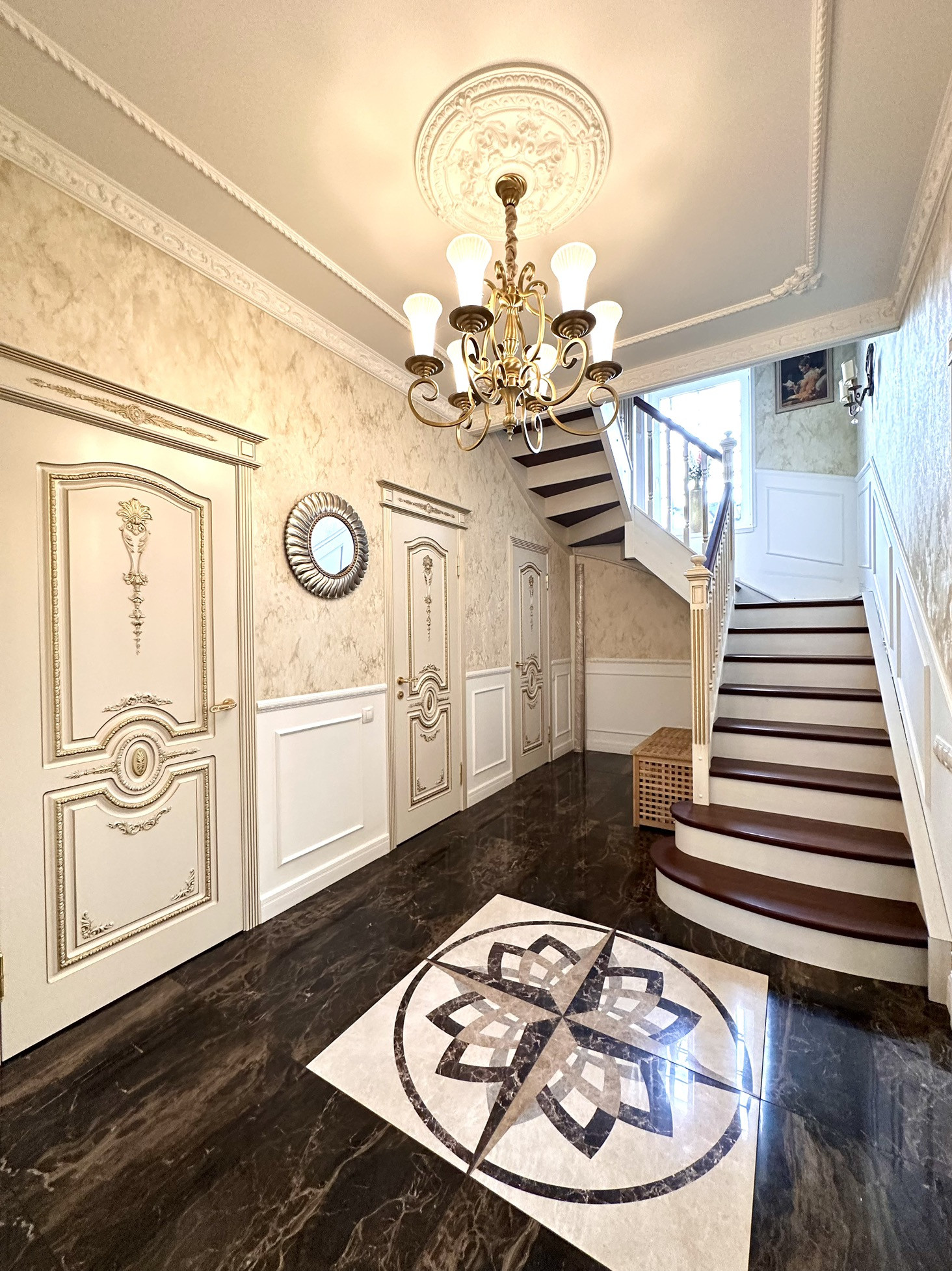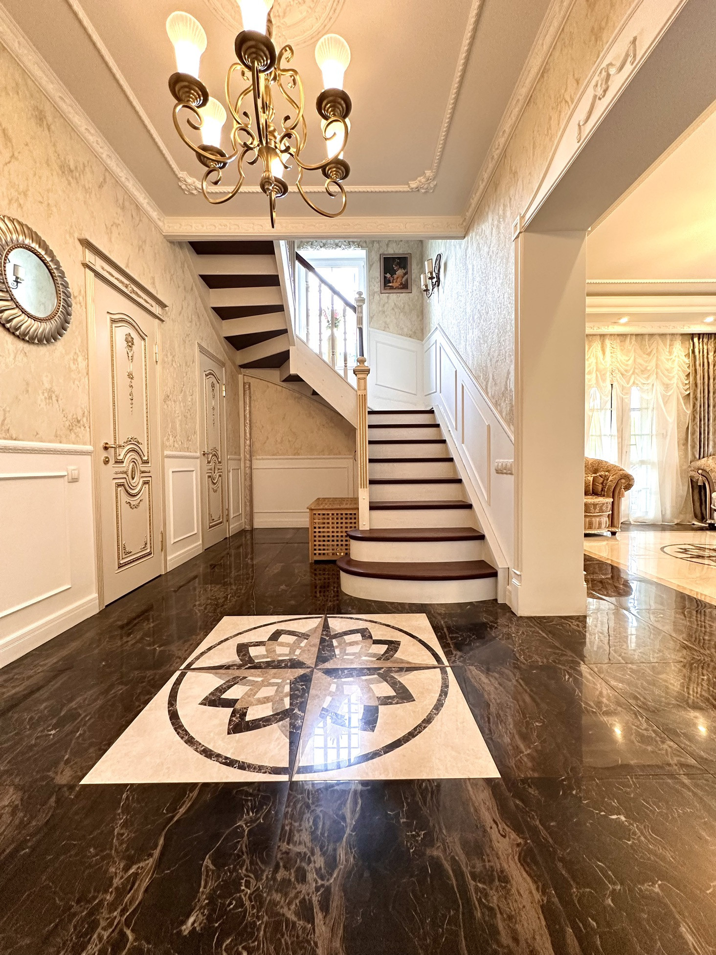 Внутренняя отделка в доме выполнена по индивидуальному дизайн проекту.