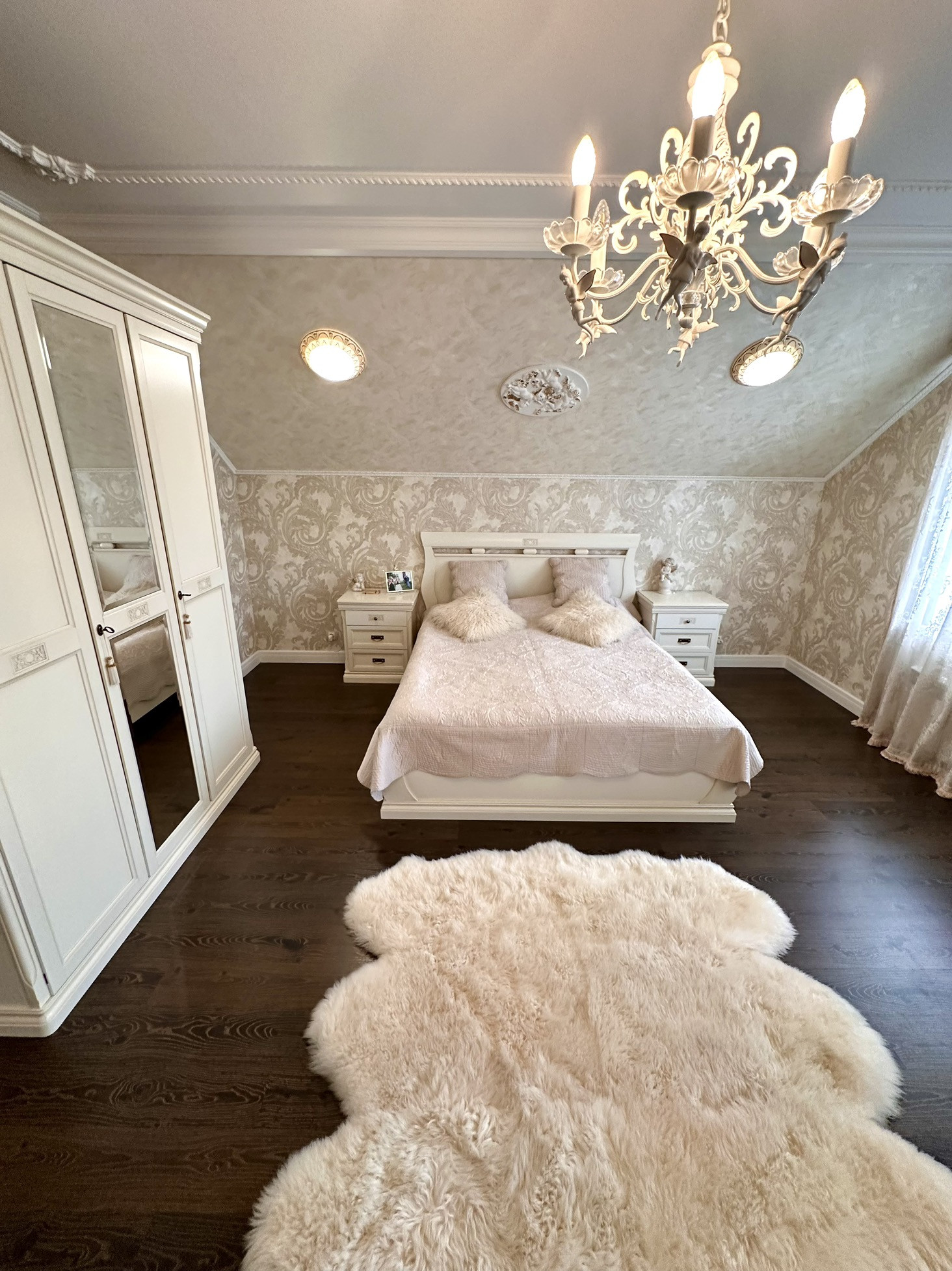 3 спальни, гардеробная, холл, санузел.