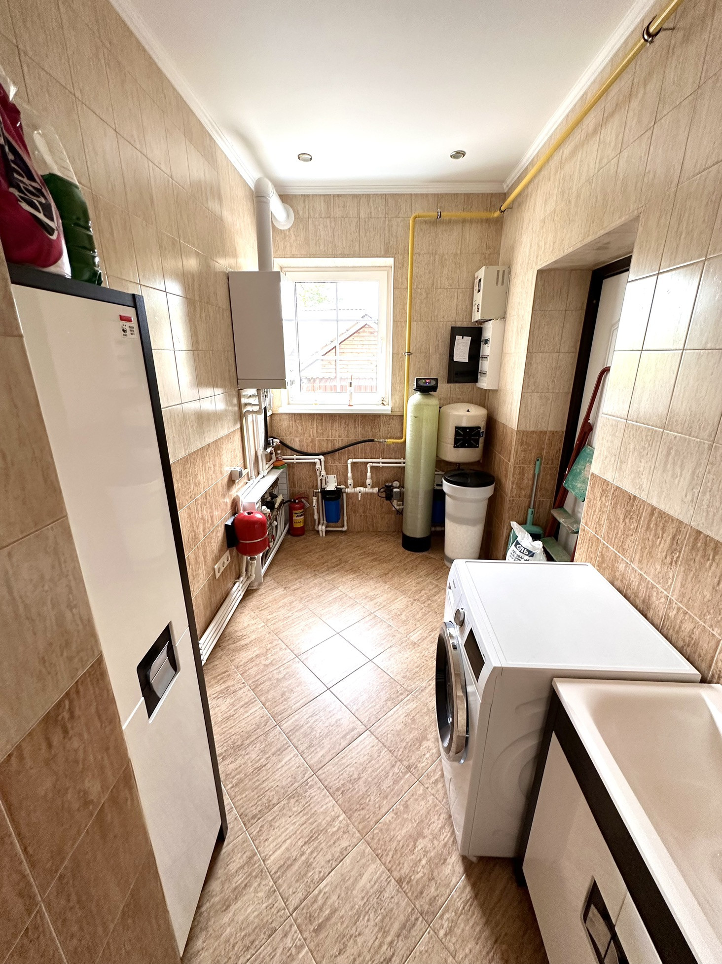 Дом оснащён автомотическим двухконтурным газовым котлом (отопление +горячая вода).