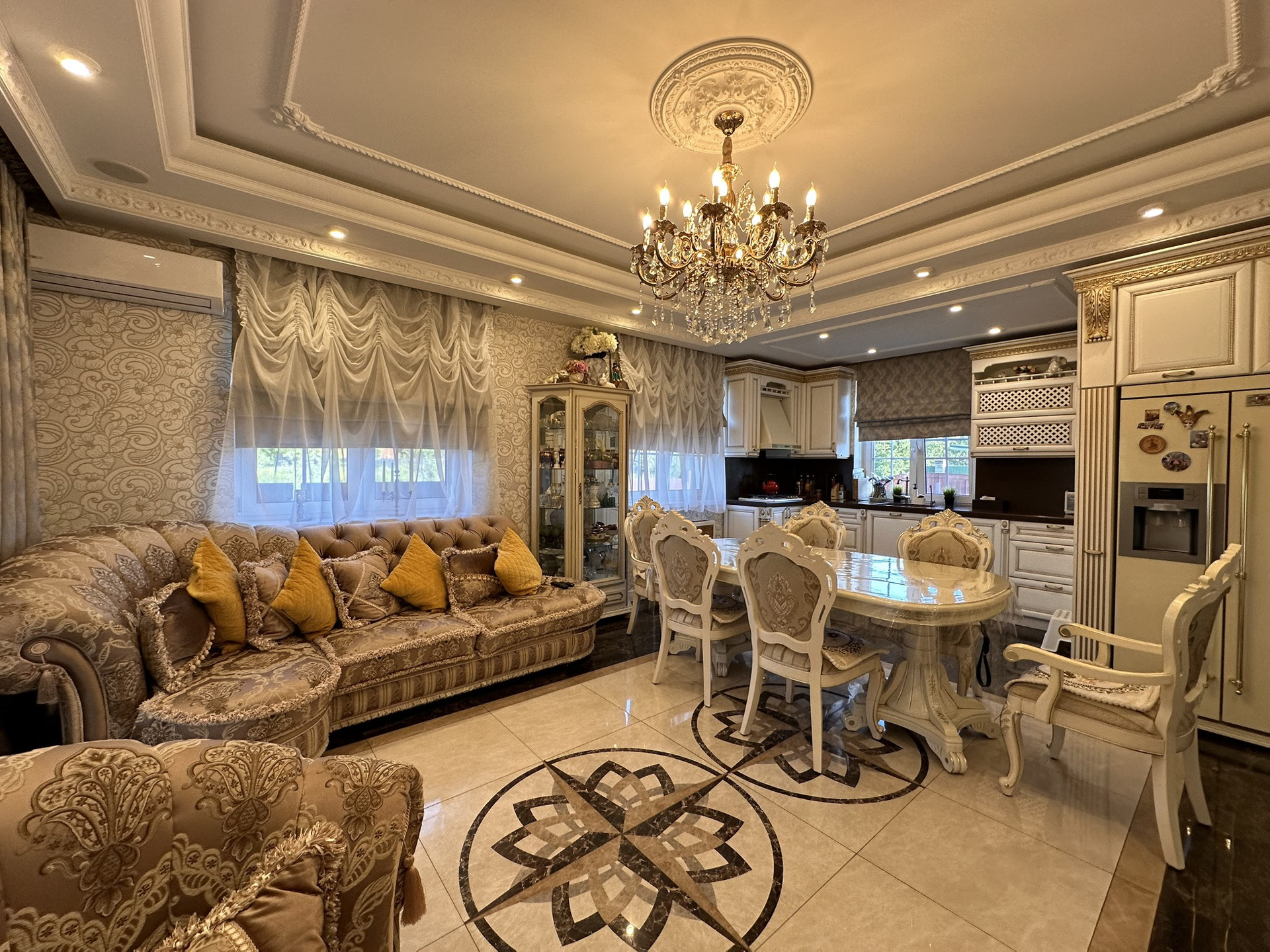 Прихожая, гостевая спальня, холл, санузел, просторная кухня – гостиная , кухня оборудована встроенной бытовой техникой.