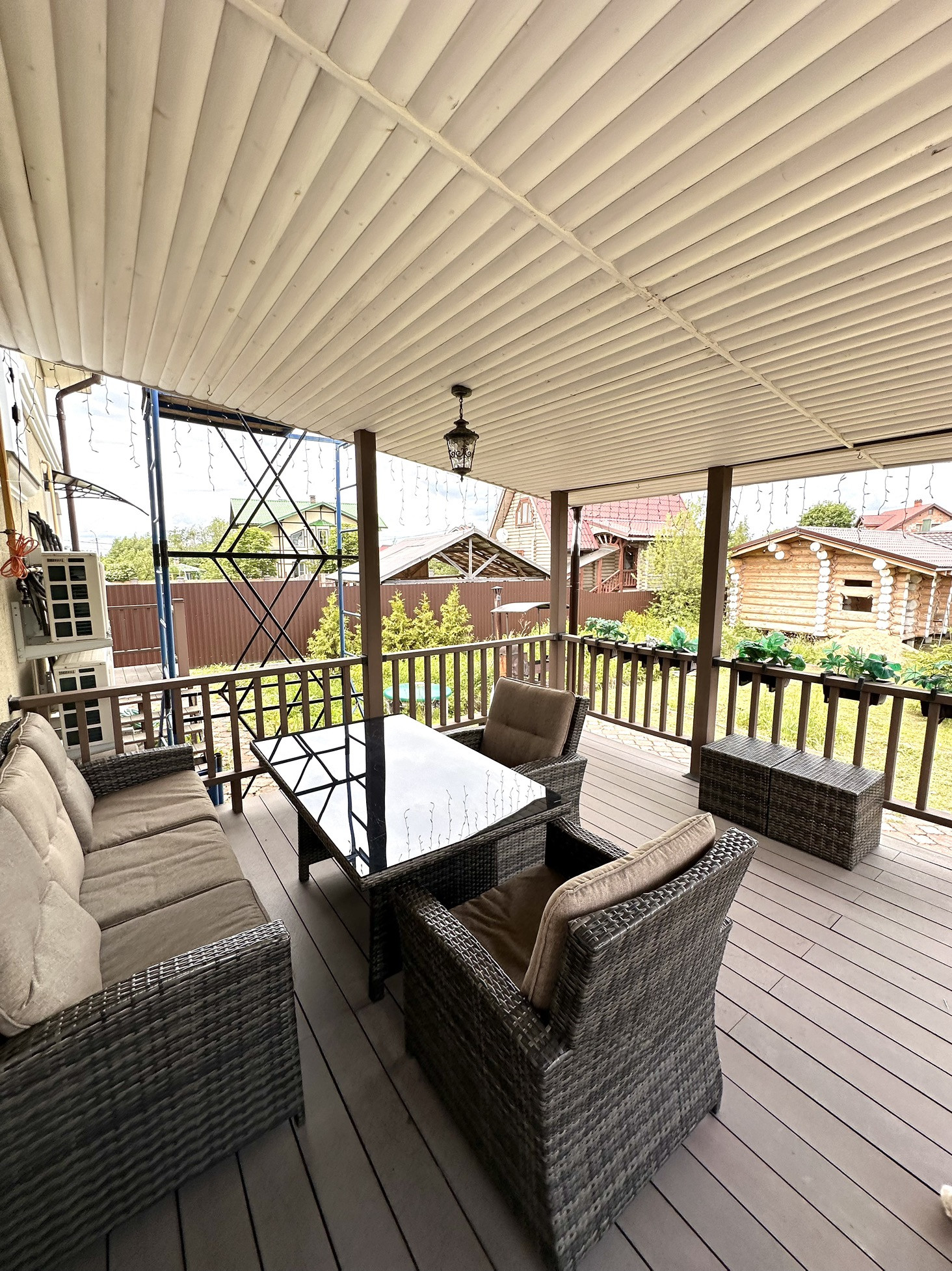Большая открытая терраса 25 м. кв. с выходом из гостиной и зоной для барбекю.