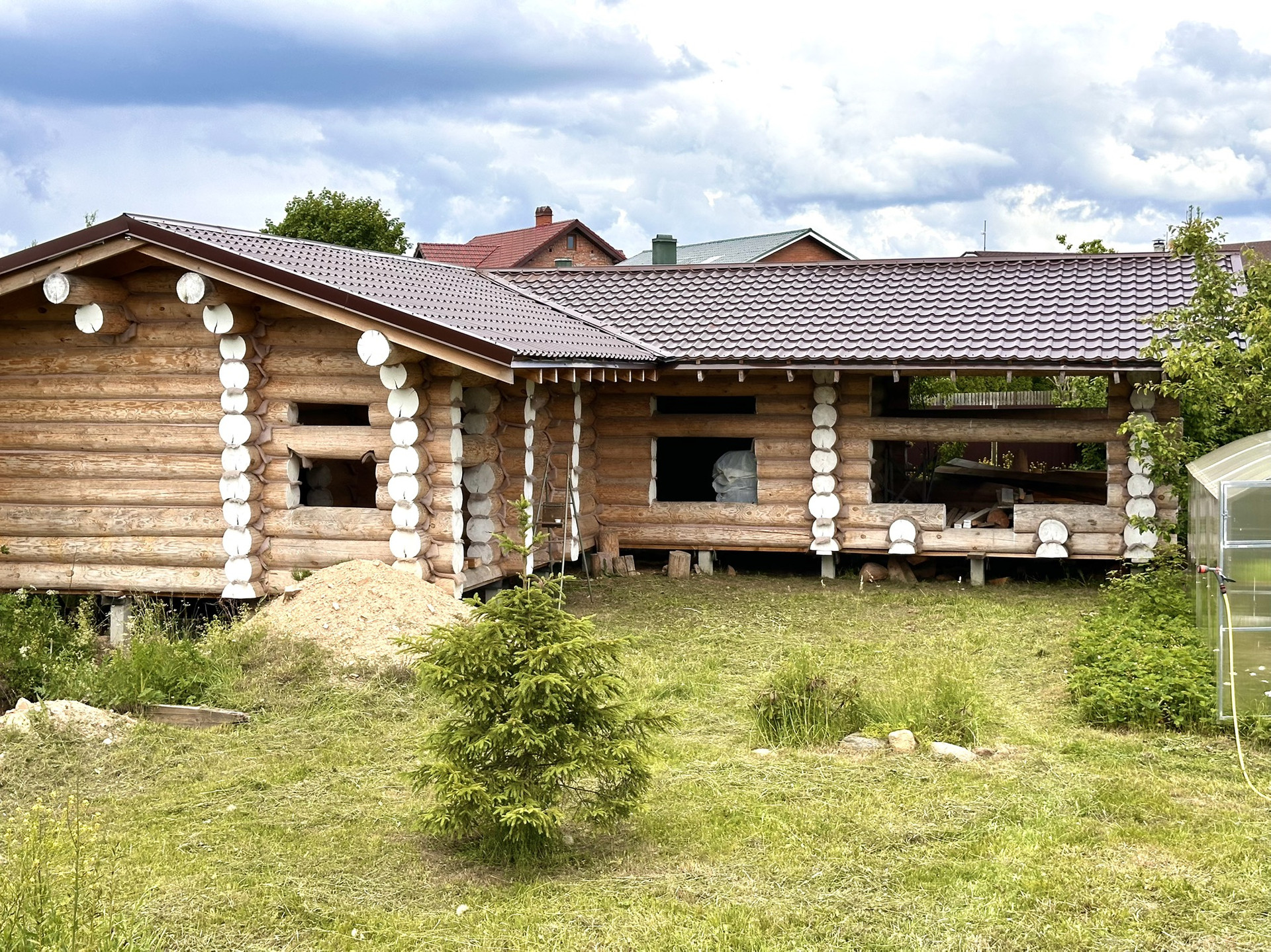 На участке также размещен сруб под крышей общей площадью 80 м2 (баня, душевая/туалет, комната отдыха, летняя кухня, спортзал) имеется проект.
