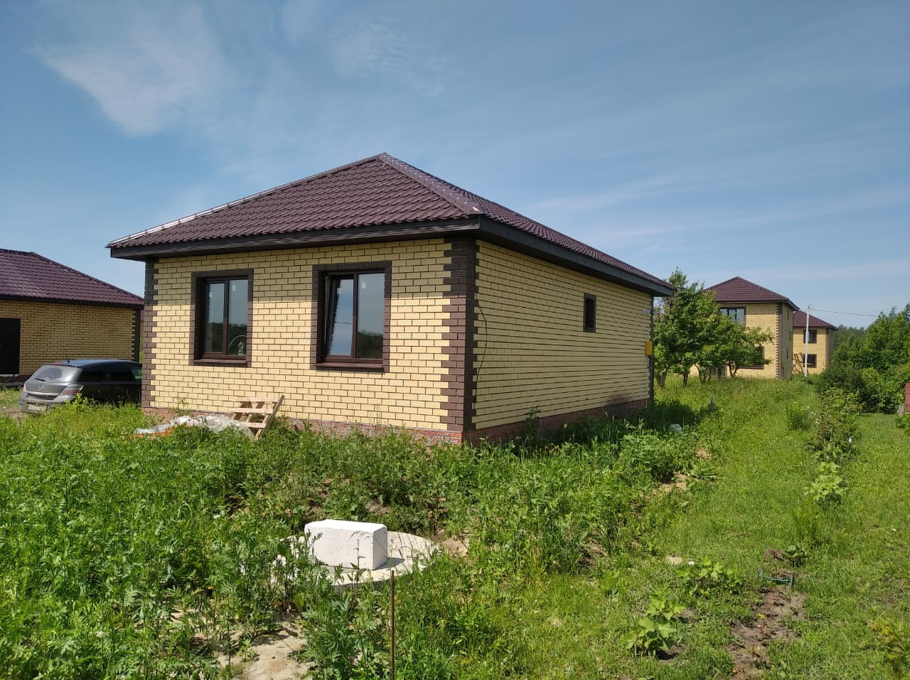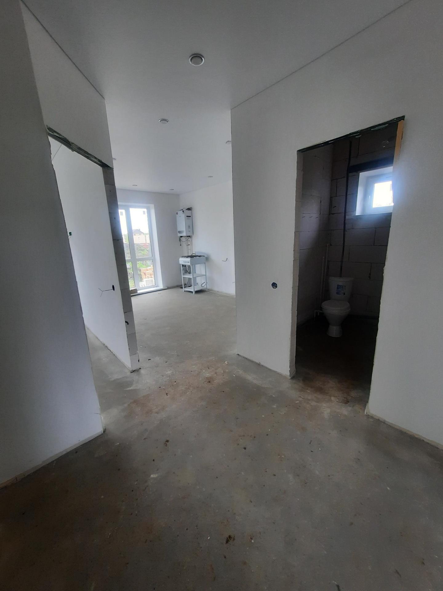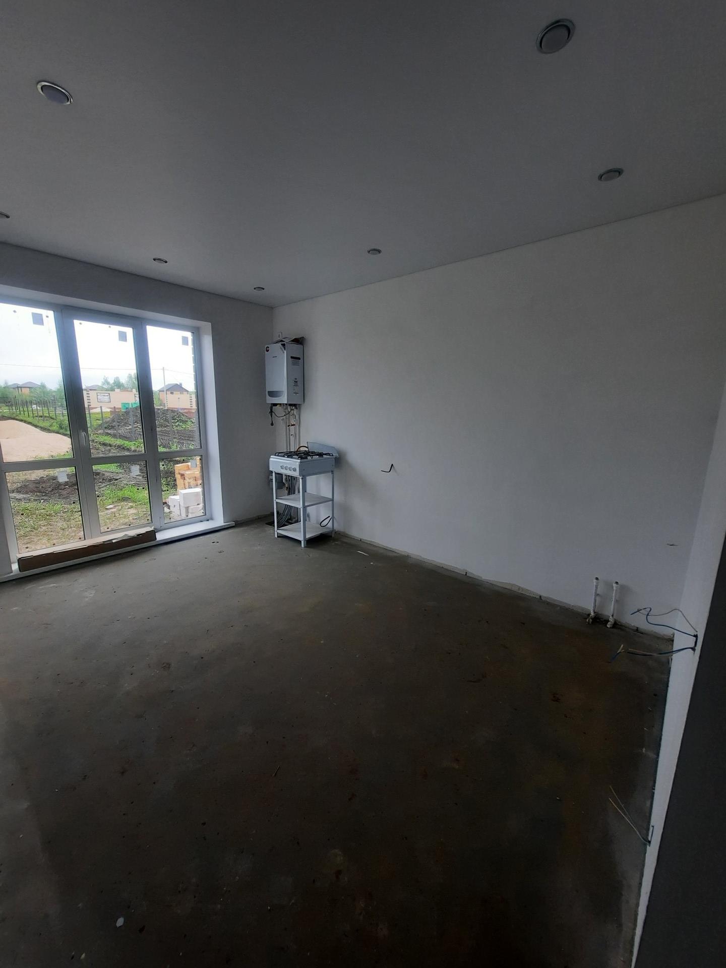 Новый дом под чистовую отделку.Стены отшкалеваны под обои или покраску, установлены натяжные потолки, подоконники и откосы, идеальная нулевая ровная стяжка на полу готова к укладке строительных материалов на ваш вкус (Линолеум, ламинат, плитка,паркетная доска, и.т.д).(Газ,вода,канализация,электричество)