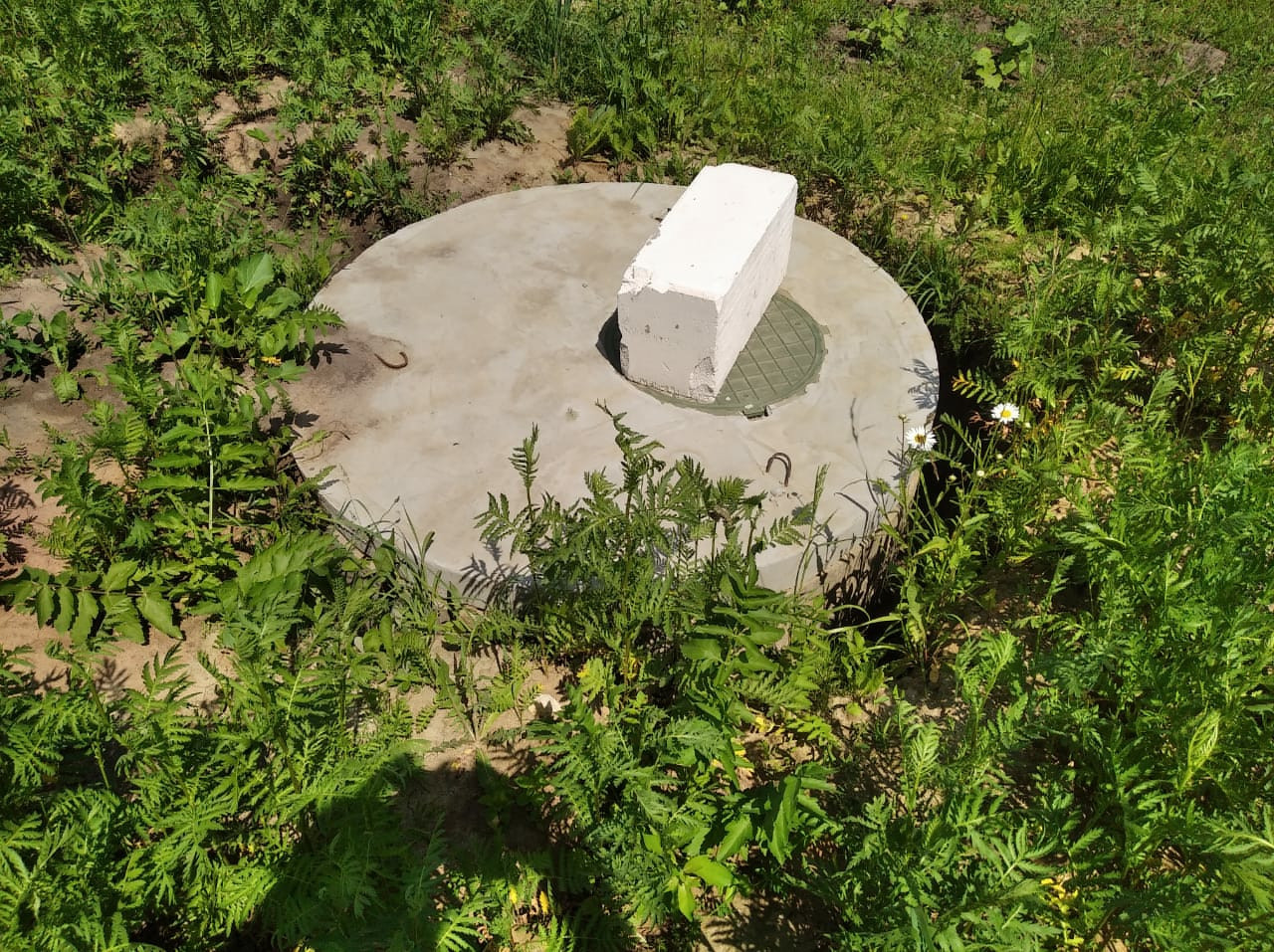 Собственная индивидуальная скважина с погружённым насосом и блоком автоматики.