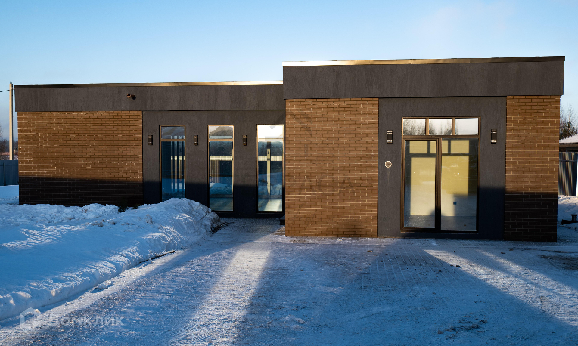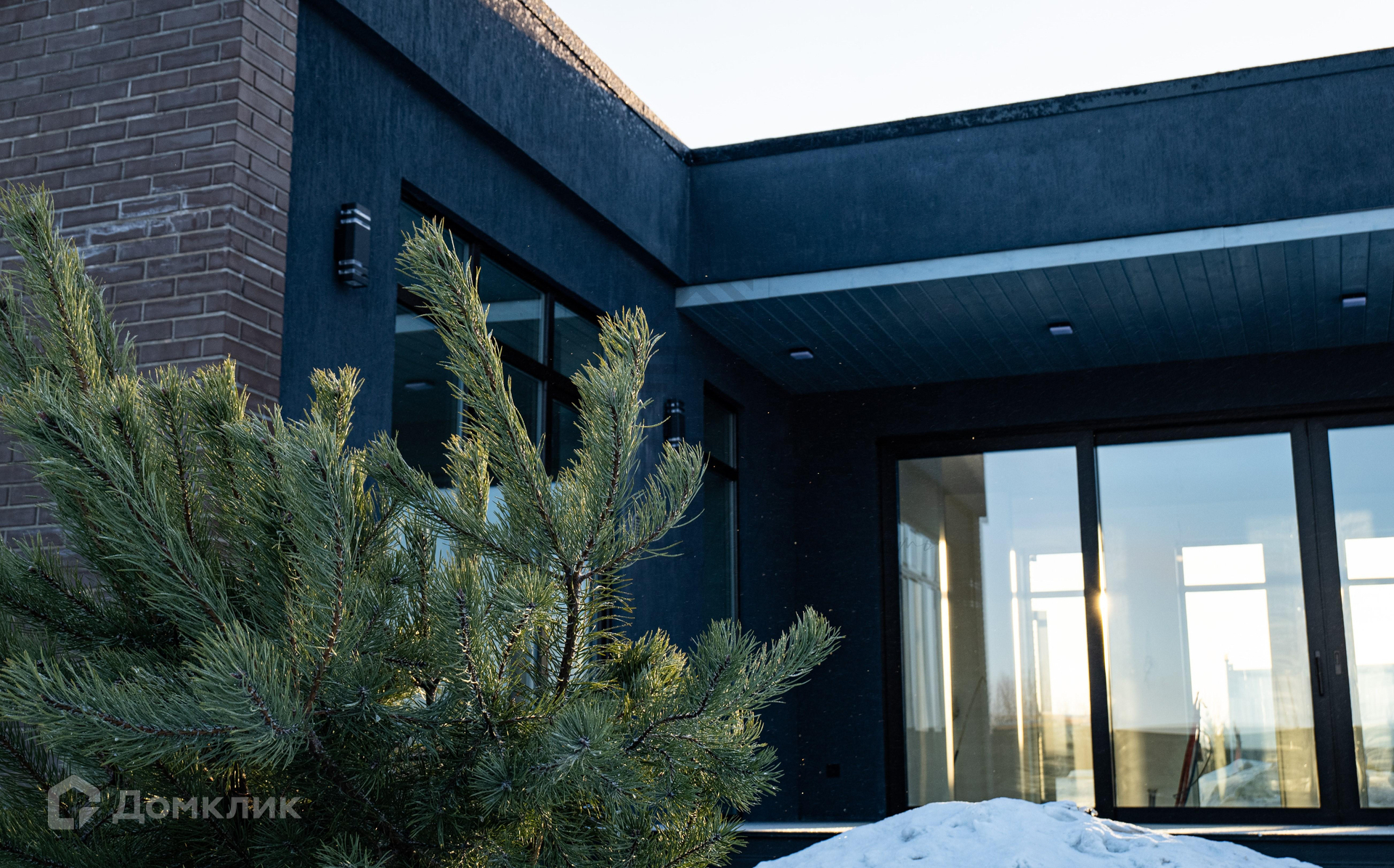 Стены – газобетон + дополнительное утепление. Элементы фасада отделаны кирпичом.