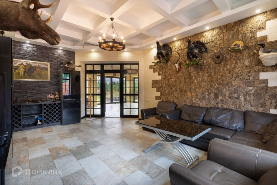 Современная удобная планировка дома включает в себя 3 этажа и цокольный этаж. На первом этаже находятся, просторная кухня-гостиная, в центральной части отведено место под камин, смонтирован дымоход. В доме найдется место для всех членов семьи, родственников и гостей. Семь спален, игровые, кабинет, предусмотрены помещения под сауну и купель, бильярдную, постирочную , технические помещения , в общей сложности в доме шесть ванных комнат.