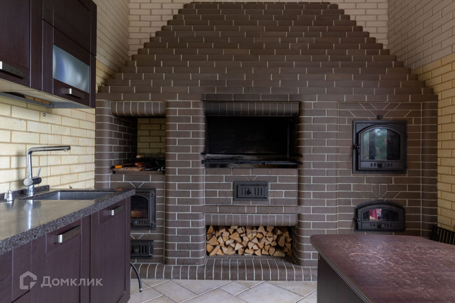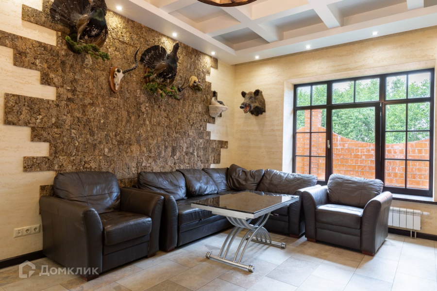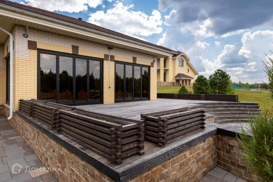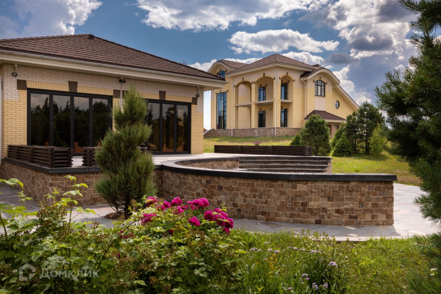 Дом строился по индивидуальному проекту. Материал стен – кирпич (600мм). Фундамент – ж/б плита 400 мм. Деревянные окна, огромные витражи в гостиной выполнены из гнутых стекол. Кровля композитная черепица. Теплые водяные полы по всему дому.