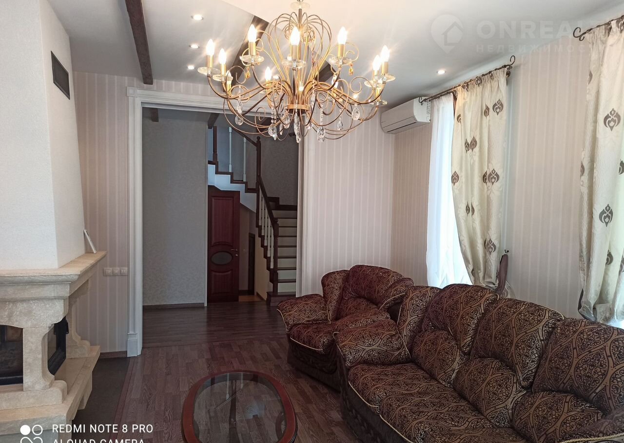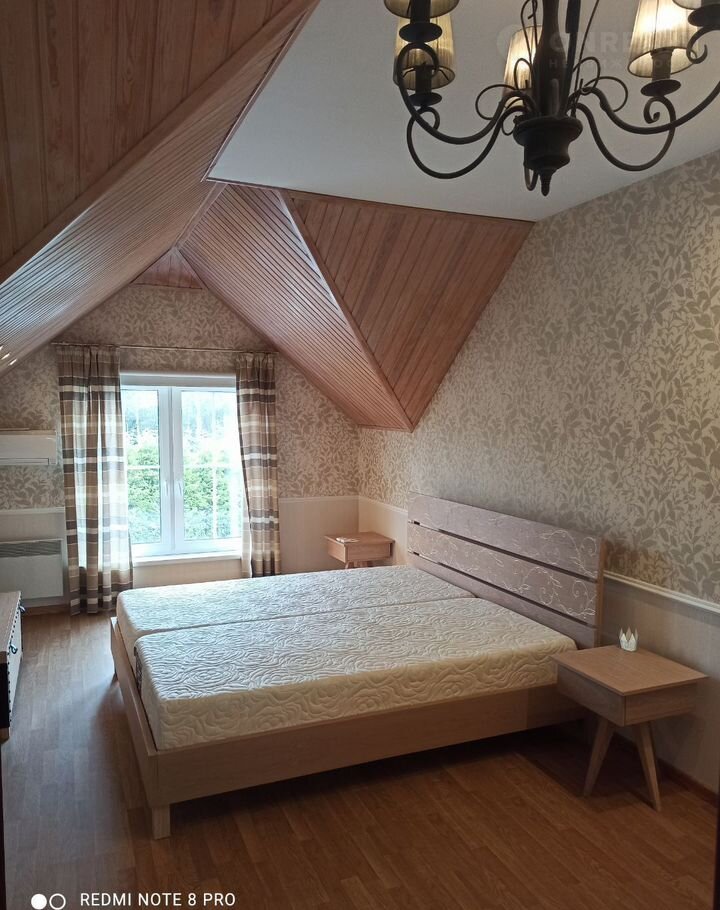 В доме 5 спален , в двух оборудованы гардеробные. Большая гостиная с камином,,обеденная зона и кухня с техникой (холодильник, посудомоечная машина,духовка и варочная поверхность Еlесtrоluх, два санузла,сауна финская. На первом этаже хозяйственное помещение с системой резервного водоснабжения , системой отчистки воды ,счетчик и автоматы электроснабжения, стеллажи и помещение с поднимающимися воротами для хранения велосипедов и т.п. Терраса огороженная с двухстворчатой стеклянной дверью.