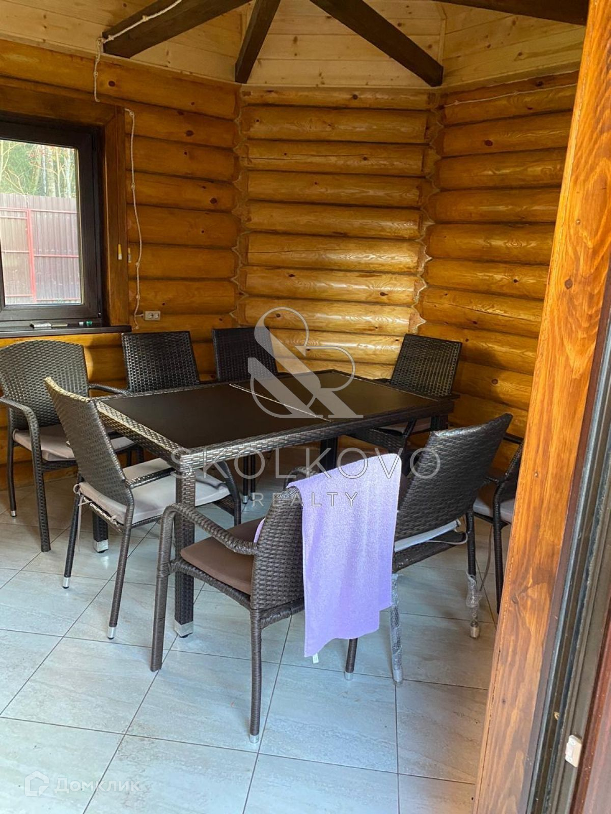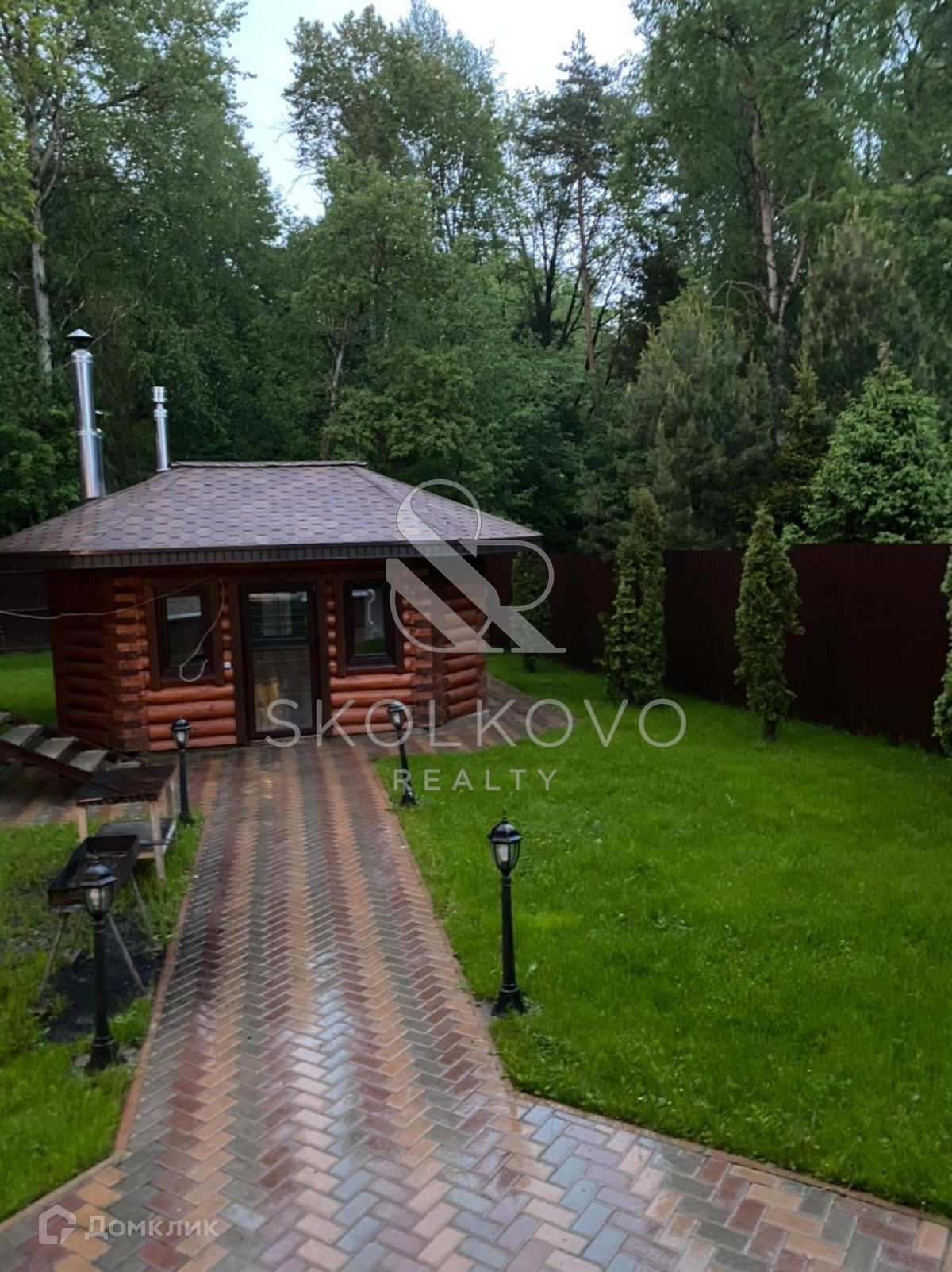 Дом расположен в деревне Хлюпино на участке общей площадью 12 сот. Также на участке оборудованы баня с сауной и купелью, зона отдыха, зона барбекю, гостевой дом. Расположение в окружении лесных массивов позволяет наслаждаться чистым воздухом и живописными видами. Хорошо развита инфраструктура: продуктовые магазины, аптека, почта, детский сад. На границе деревни проходит Звенигородское шоссе. Поблизости расположена станция Хлюпино.