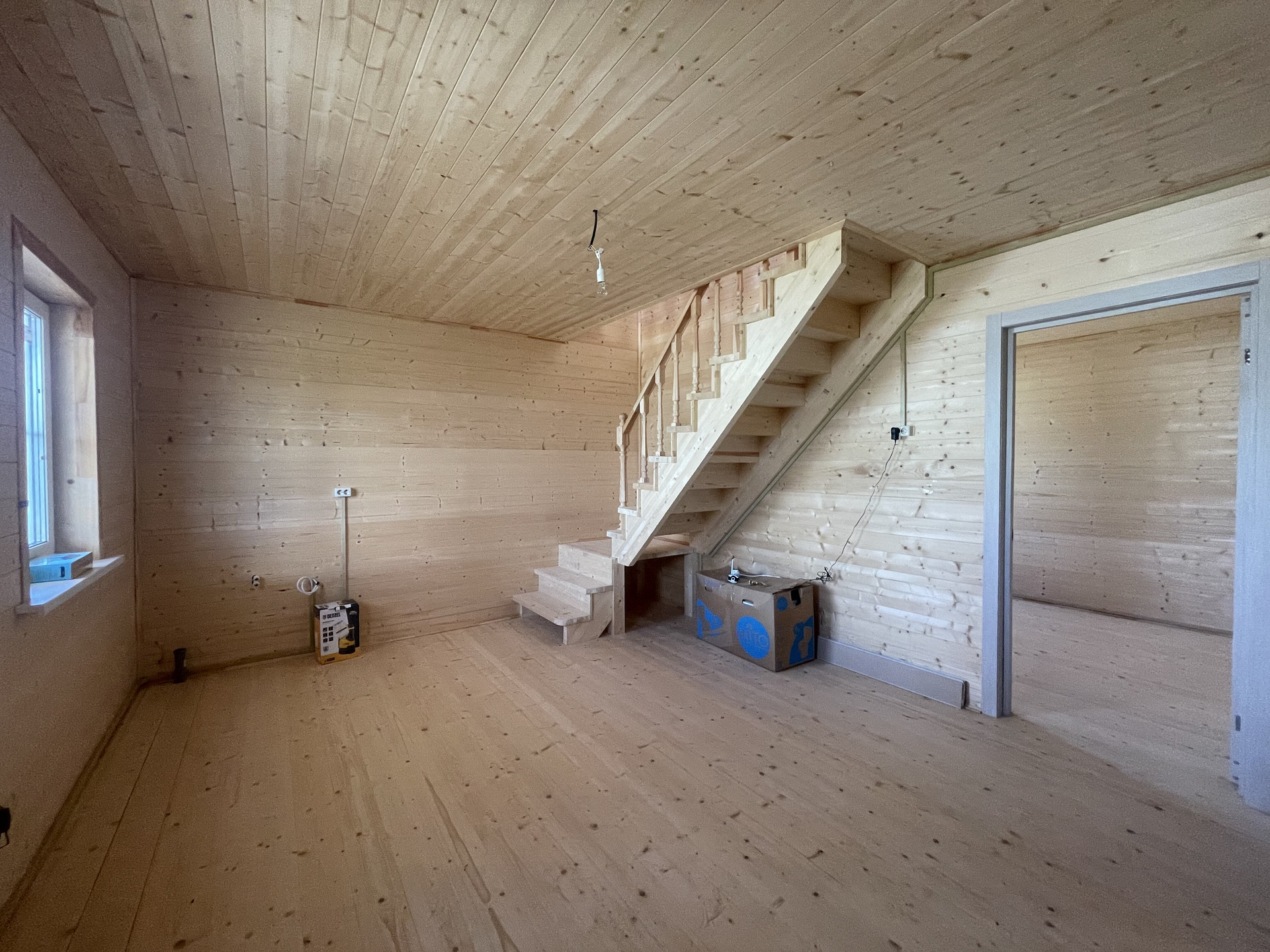 ОТЛИЧНОЕ ПРЕДЛОЖЕНИЕ! ПРОДАЕТСЯ ДОМ В ДЕРЕВНЕ ХЛЮПИНО! Дом каркасно- щитовой утепленный. Общая площадь 99,5 квадратных метров. Удобно разделено пространство. На первом этаже: прихожая комната, кухня-гостиная, туалет, ванная комната, спальня. На втором этаже: проходная спальня, изолированная спальня, терраса. В доме выполнена электроразводка, разводка для воды и канализации, заведена вода (артезианская скважина), подключен септик, газ идет по границе. Участок ровный, отсыпана парковка для автомобиля, отмостка и дорожка к входу в дом. На участке есть лиственные деревья. Отличные соседи, зеленый район. В пешей доступности остановка общественного транспорта и ЖД станция Хлюпино.