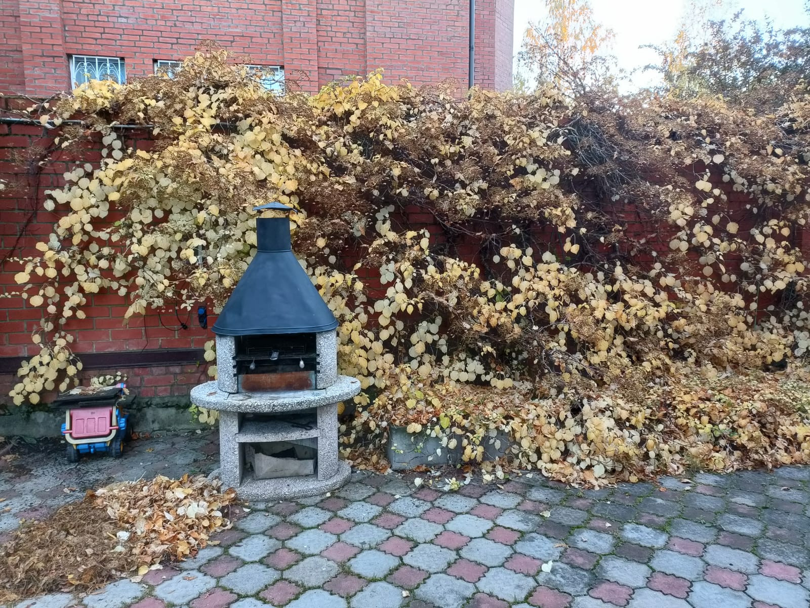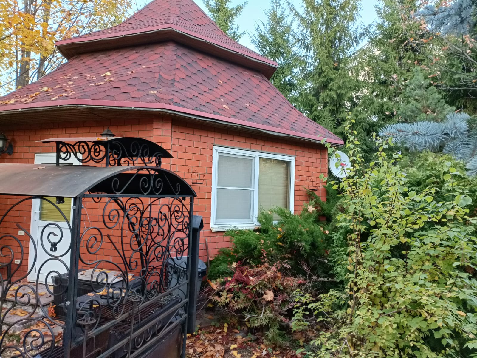 На участке расположена большая беседка с отоплением и камином, зона барбекю, хоз. строения, детская площадка.