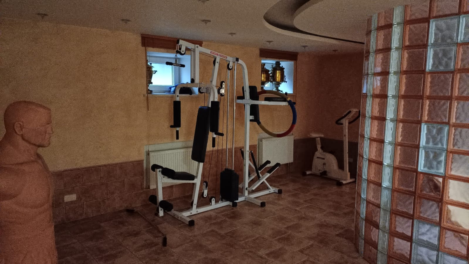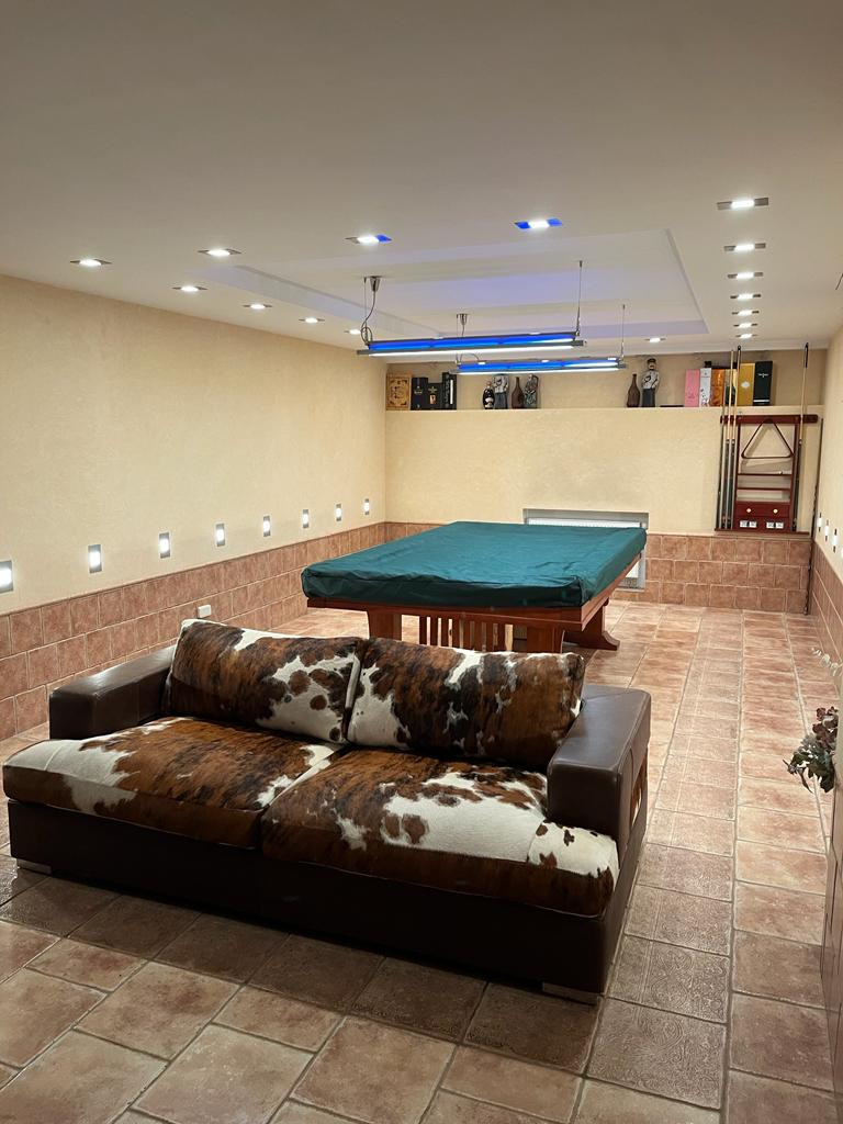 Цокольный этаж: зона отдыха-бильярдная, домашний кинотеатр, барная стойка, гостевой санузел, тренажерный зал, постирочная и бойлерная.