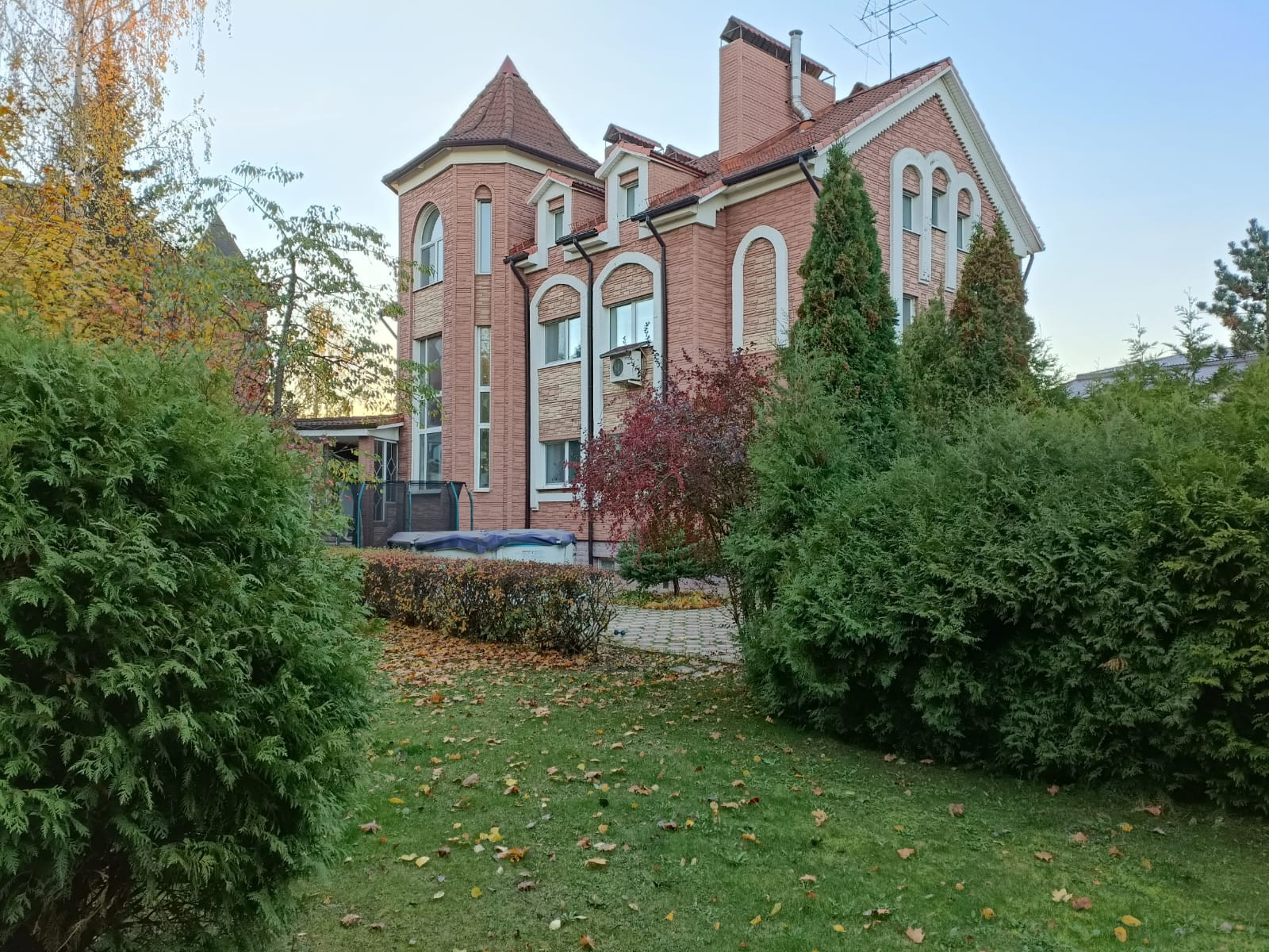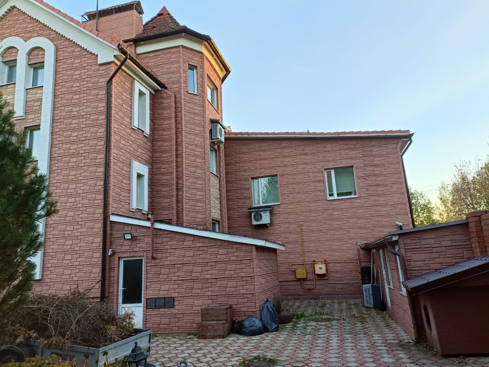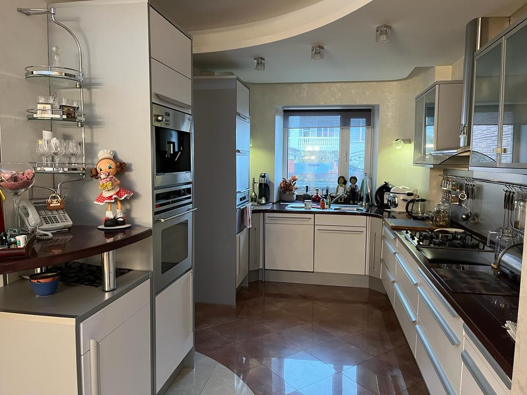 Планировка дома: 3 жилых этажа+цокольный этаж. Есть гараж на 2-3 мм. Материал стен: кирпич (метровые стены), кровля из натуральной черепицы.