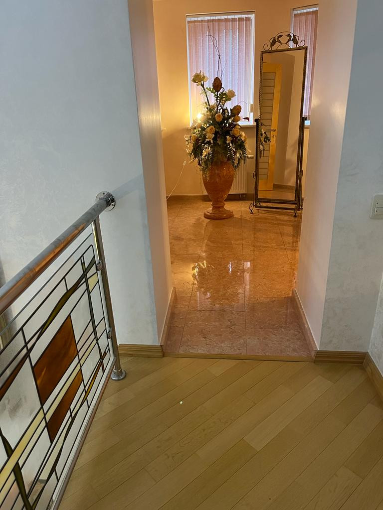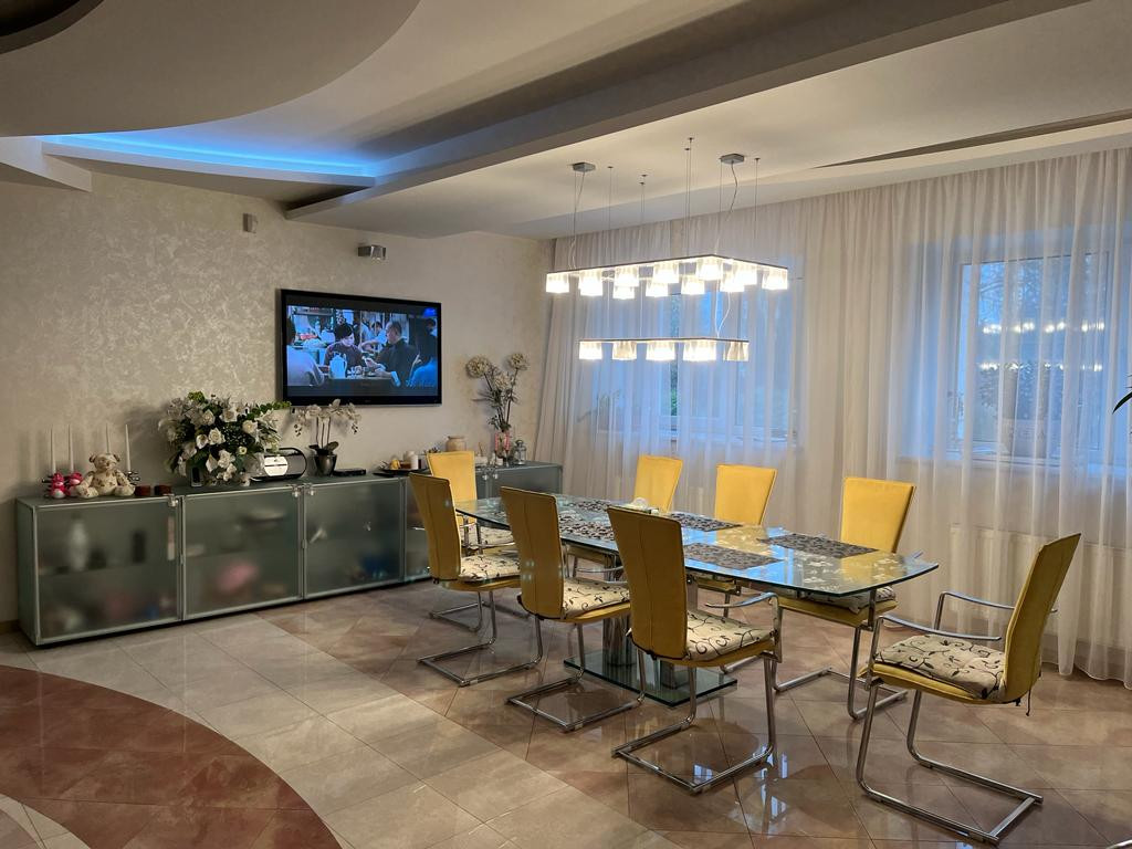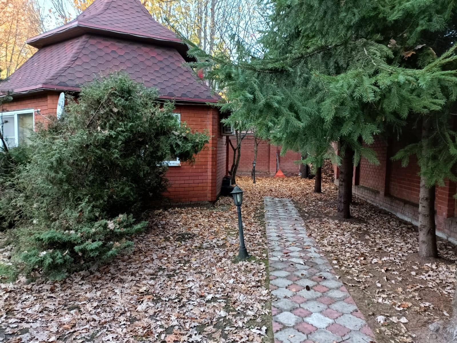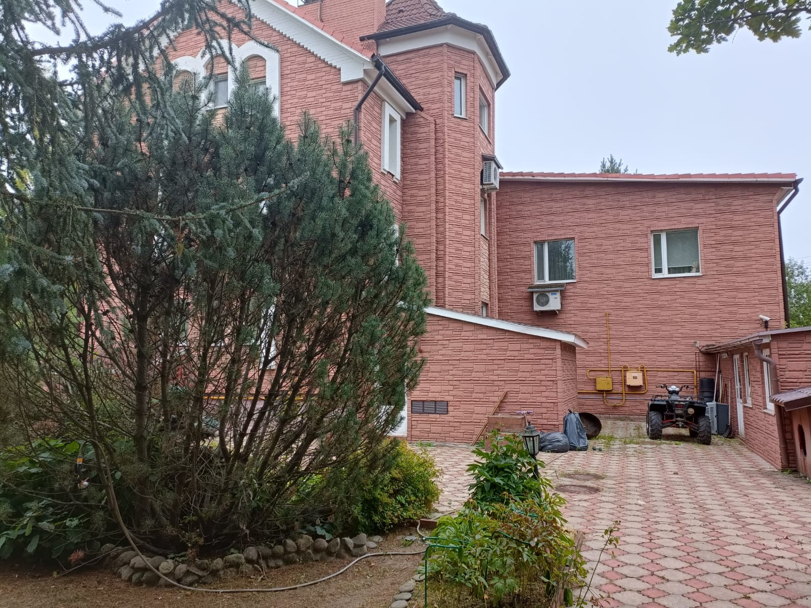 Планировка дома: 3 жилых этажа+цокольный этаж. Есть гараж на 2-3 мм. Материал стен: кирпич (метровые стены), кровля из натуральной черепицы.