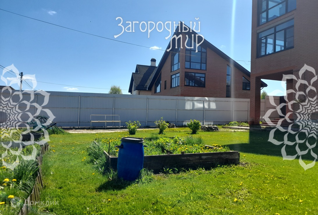 ИЖС. Участок 7 соток, ровный, прямоугольной формы: площадка и дорожки из тротуарной брусчатки, газон. Участок огорожен забором из металлопрофиля на ленточном фундаменте с автоматическими воротами