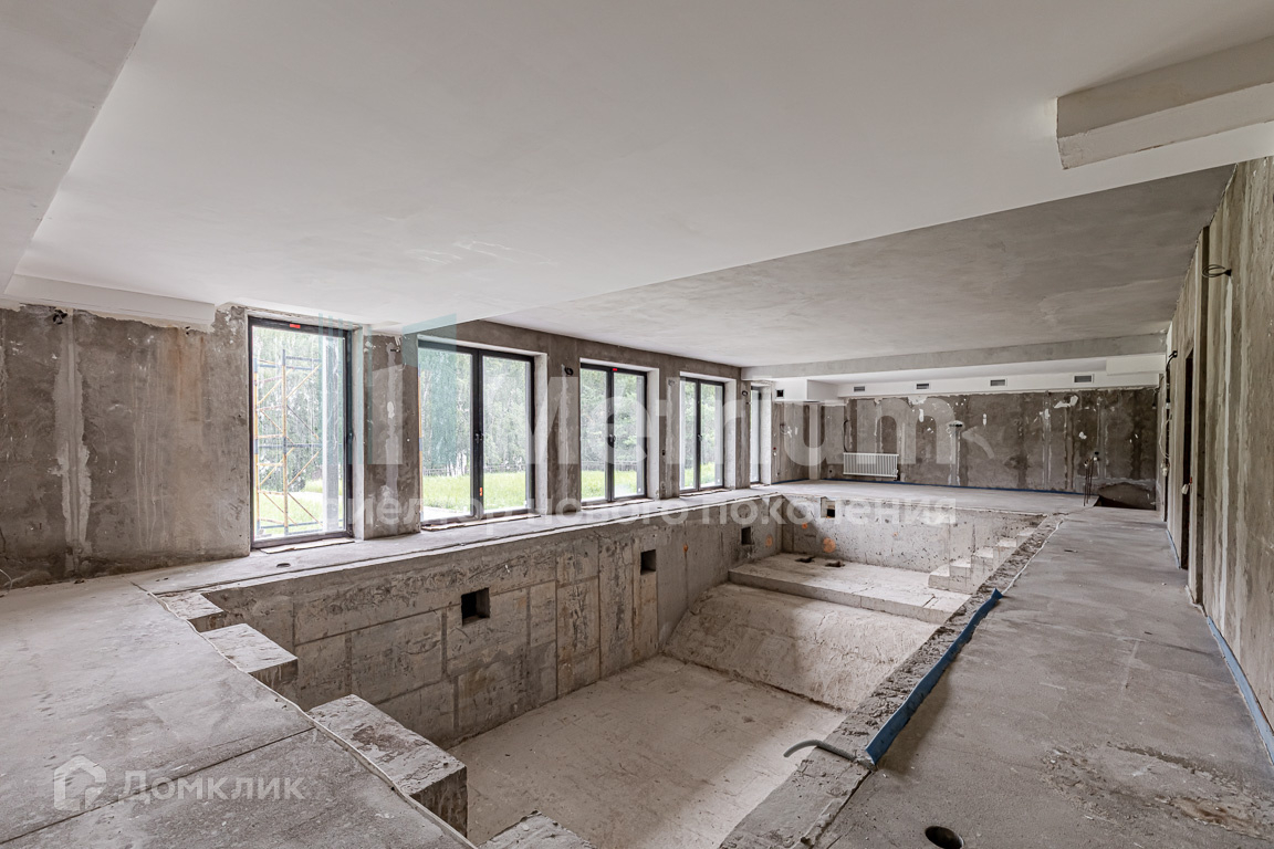 Дом отапливается, электричество разведено, сделана лестница, стоят радиаторы, стены выровнены, на полу стяжка, пять спален, бассейн, сауны, столовые, приточная вентиляция в стоимость входит полный комплект оборудования бассейна, проектная документация на баню и гостевой домик.