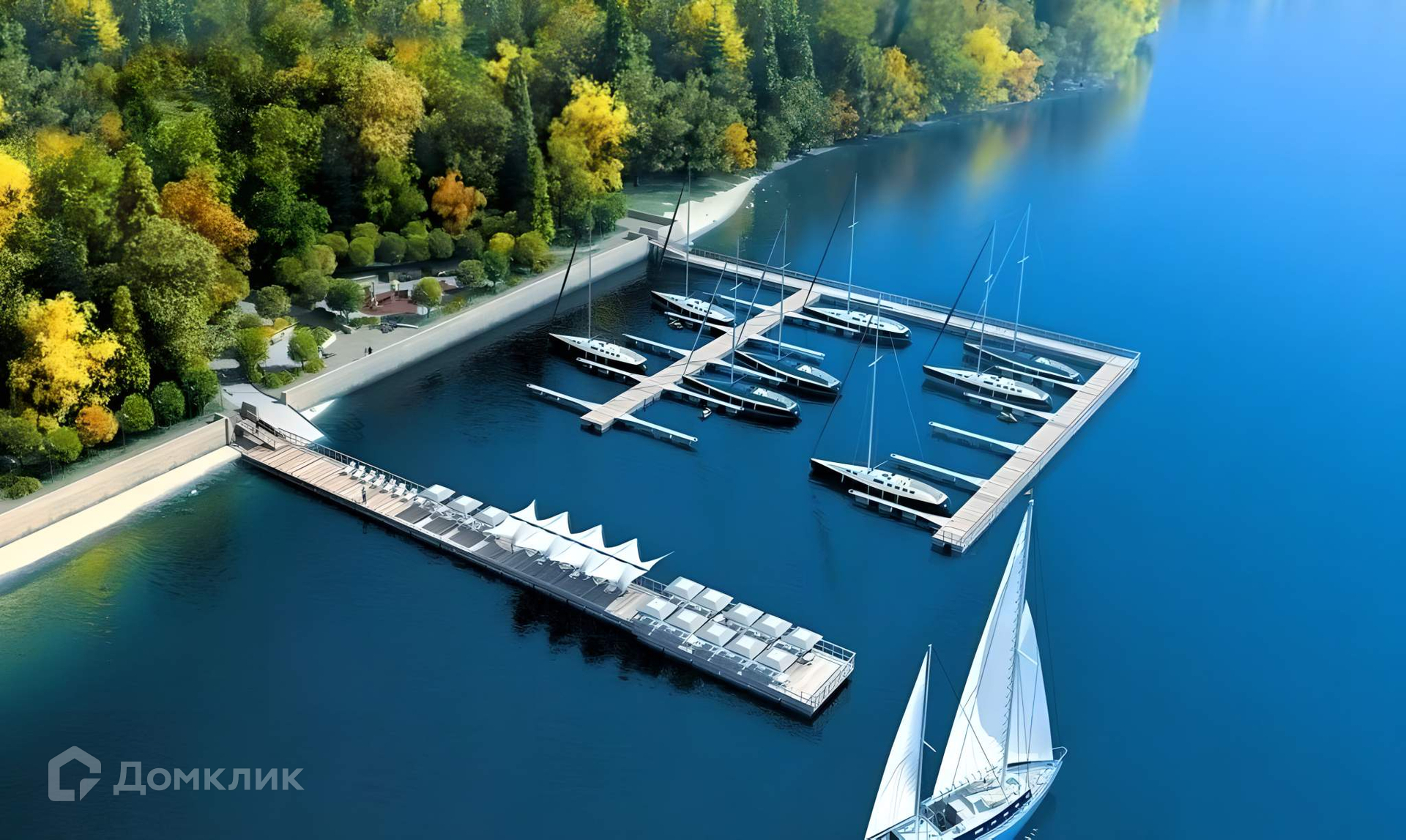 4. Премиальная инфраструктура:  причал для катеров и яхт, пляж, развлечения и спорт на воде, панорамный ресторан с видом на воду, теннисный корт, профессиональные силовые и кардио-тренажеры для занятий на свежем воздухе, детские игровые зоны для спорта и развлечений, парк с мощеными дорожками, качелями и гамаками, прогулочные пешеходные аллея и аромасады.