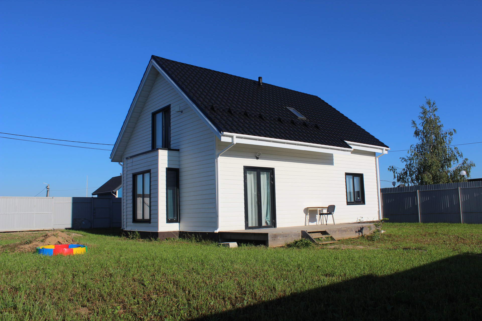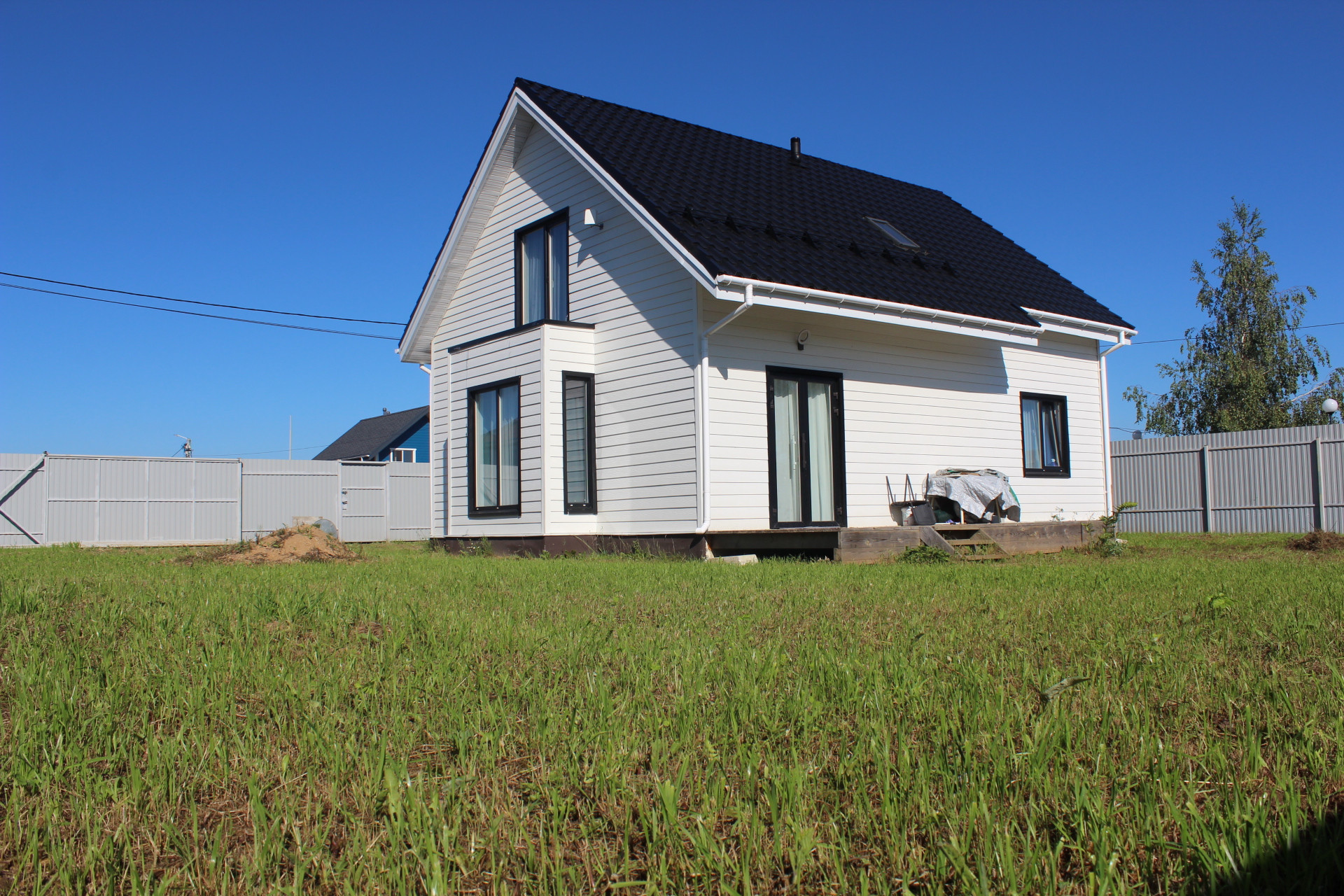 Дом выполнен по каркасной технологии, в наличии договор подряда от строительной компании, план строительства и план дома. Фундамент на монолитной плите, теплый пол по всему первому этажу. На 2-ом этаже батареи. Участок выравнен, посеян газон.