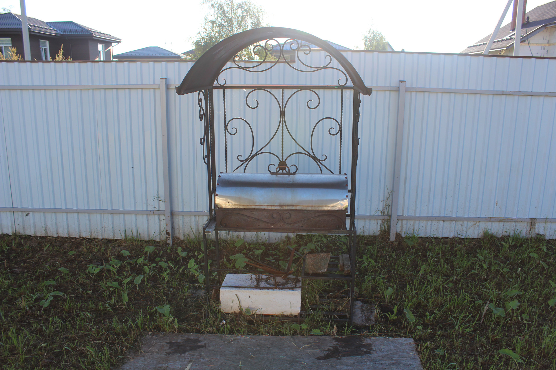 Оборудована зона жарки - Мангал с крышей. В целом, готовый вариант для загородной жизни, делать не нужно ничего от слова совсем.
