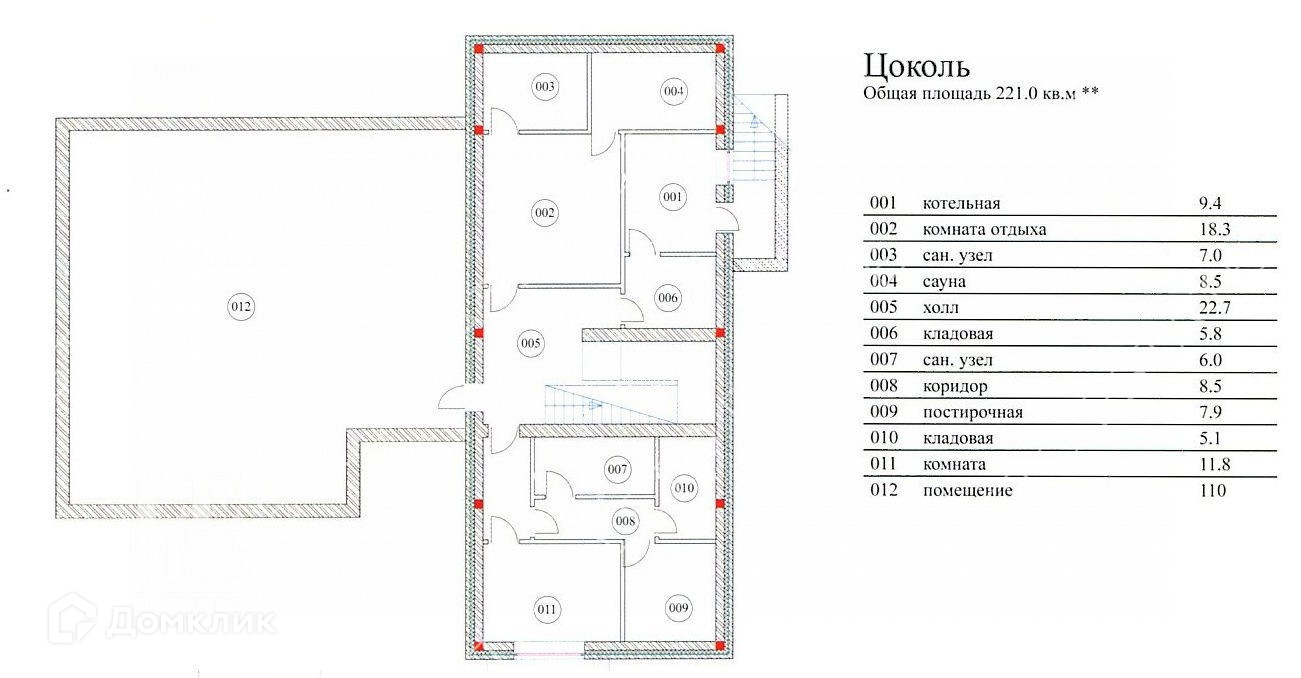 Цокольный этаж - котельная, комната отдыха, сауна, санузел, холл, кладовая, душевая, постирочная, технические помещения.