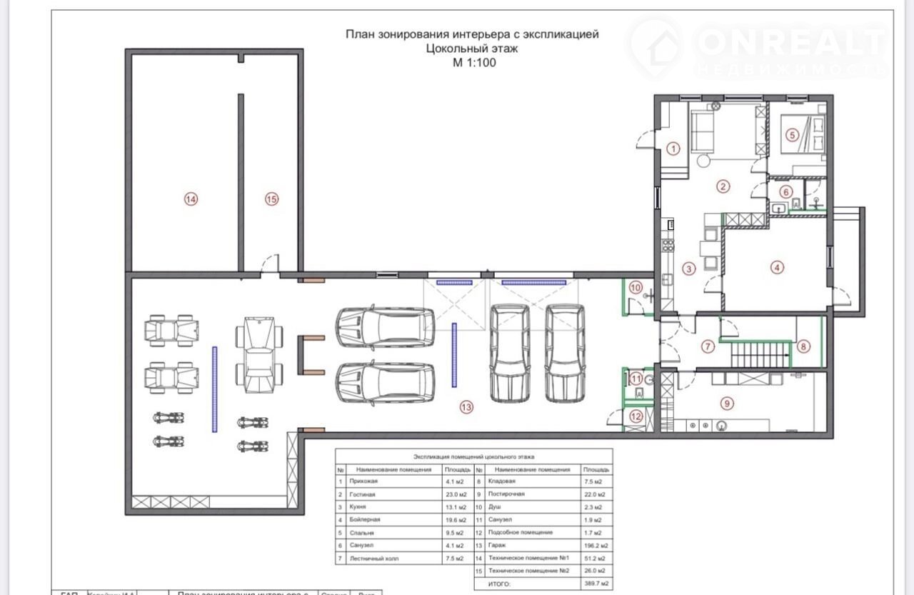 Два въезда в Гараж на 4 автомобиля, а так же большое пространство для хранения спортивной техники.