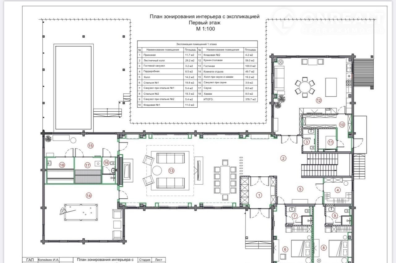 В дoме предусмотрено 7 спален, каждая со своим сан.узлом. Так же предусмотрена спа зона с чашей под 10 -метровый бассейн. Второй свет.