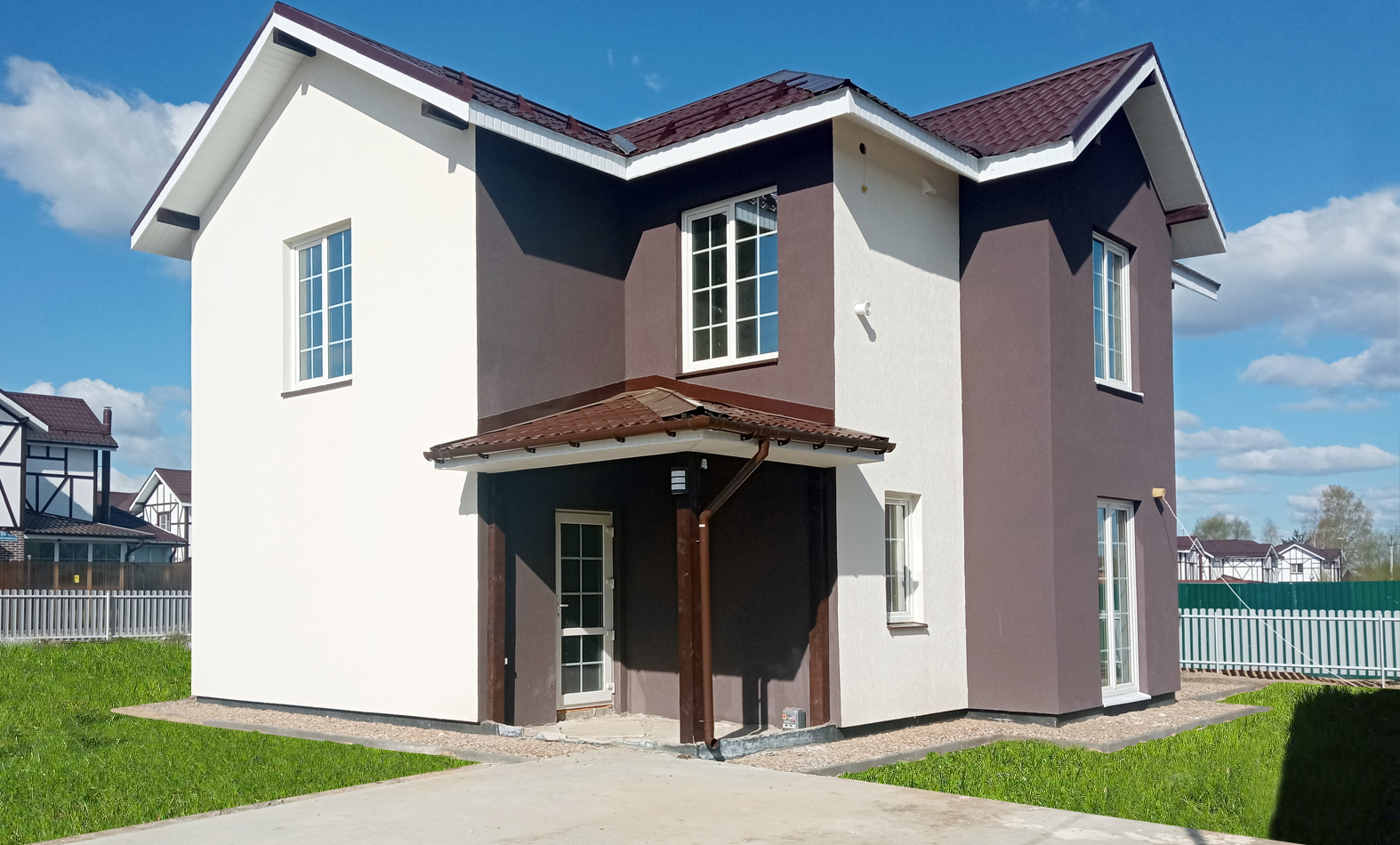 Представляем Вам новый 2-х этажный каменный дом всего в 20 минутах езды от Москвы! Дом расположен всего в 23 км от МКАД. Площадь дома составляет 150.1 кв.м., а земельный участок - 600 кв.м. Идеальный вариант для семьи на 4-6 человек с 3-4 спальнями, 2 санузлами, гостиной с кухней-столовой, гардеробной и огромной террасой. Все коммуникации подключены, включая газ, свет, воду и канализацию. Дом соответствует классу энергоэффективности категории А, что позволит значительно снизить коммунальные платежи. Возможна ипотека и использование материнского капитала. Не упустите свой шанс на приобретение этого замечательного дома в отличном месте с хорошо налаженной инфраструктурой! Построен из пескоцементных блоков. Фундамент монолитная плита Межэтажные перекрытия ж/б плиты. Кровля металлочерепица Окна, дери ПВХ REHAU Отопление газовое (СПГ либо магистральный), водяные теплые полы Водоснабжение скважина Электричество 15 кВт Статус земель ИЖС У каждого дома свой участок 600 кв.м.