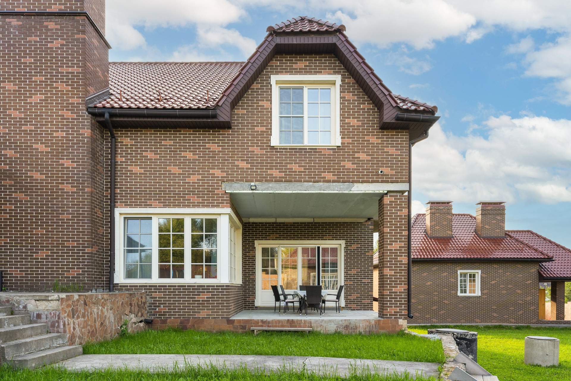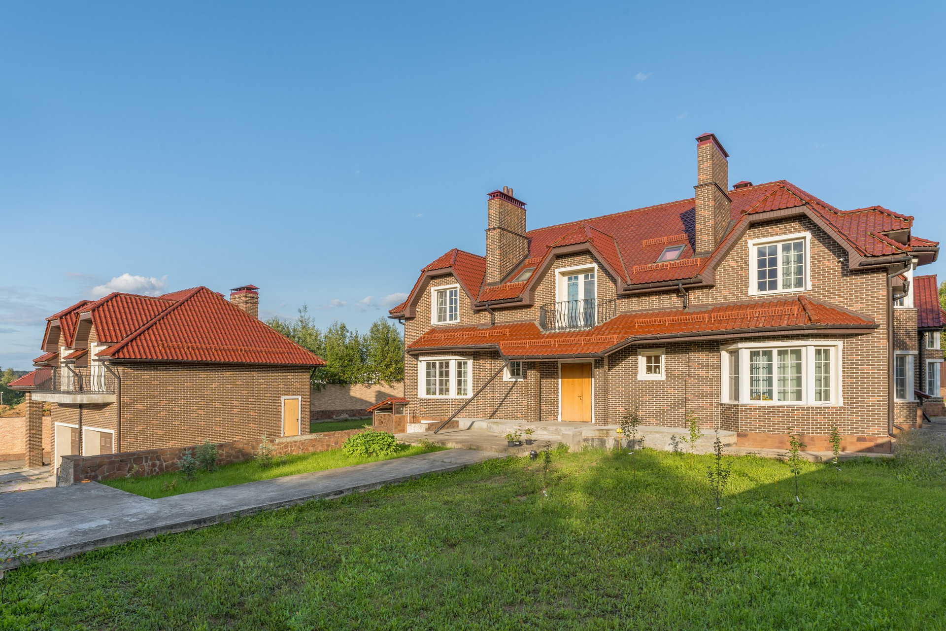 Монолитно-кирпичный дом построен из качественных дорогих материалов, функциональная, комфортная для проживания планировка. Отделочные материалы: черепица Braas Rubin 13, английский кирпич, высококачественные дерево-алюминиевые окна, отопительная система, котлы Viesmann. Планировка: цокольный этаж - котельная с выходом во двор, подсобные помещения, в т.ч. для обслуживания бассейна; 1 этаж - входная группа, гардеробная, бассейн, сауна, кухня-столовая с выходом на террасу, гостиная с камином, мастер-спальня со своим с\у и гардеробной, 2 с/у; 2 этаж 1 мастер-спальня с выходом на балкон, отдельный с/у и гардеробная, 5 комнат свободного назначения, 2 с/у. Установлено видеонаблюдение внутри дома и снаружи. В каждую комнату заведен усилитель Wi-Fi.
