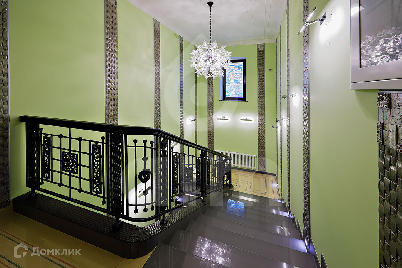 Цоколь: бассейн, спортзал, хаммам, сауна, предбанник, помещение кинотеатра, котельная, душевая, с\у, прачечная, кладовая, щитовая, оружейная комната, погреб, кладовая, лифт, квартира для персонала с 2-мя спальнями.