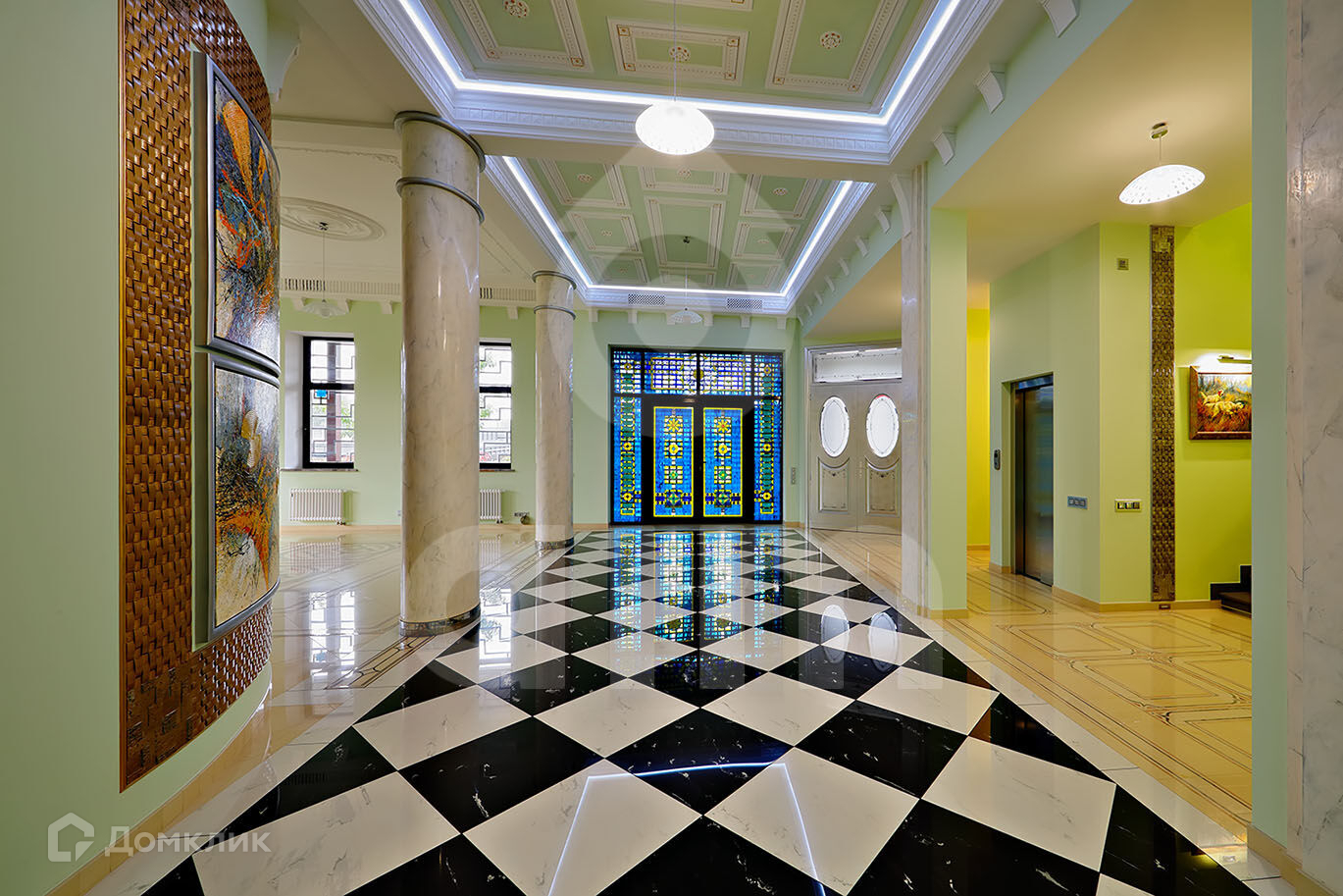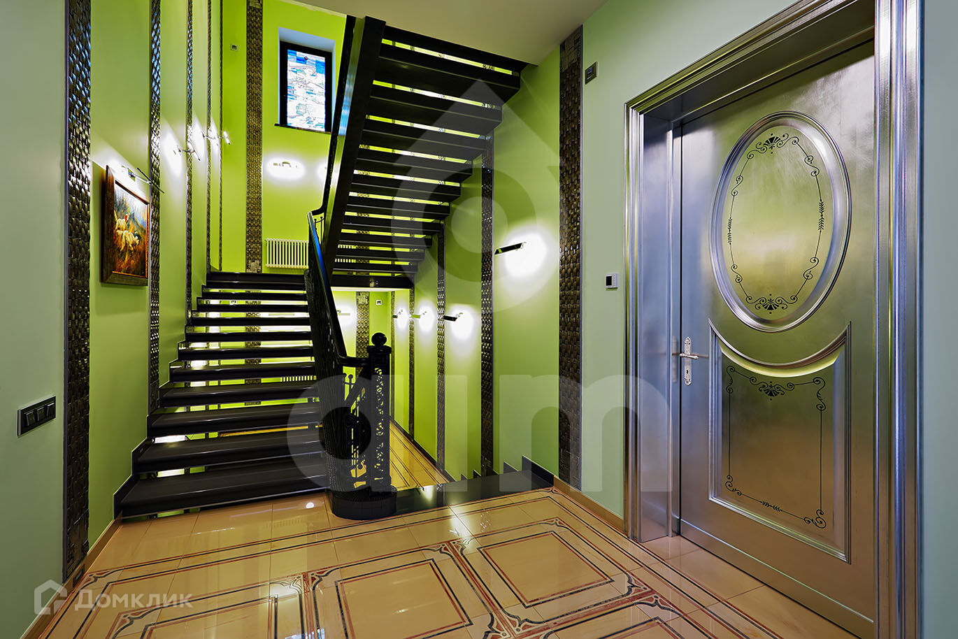 2-й этаж: холл, 2 спальни со своими ванными комнатами и гардеробными, лифт.