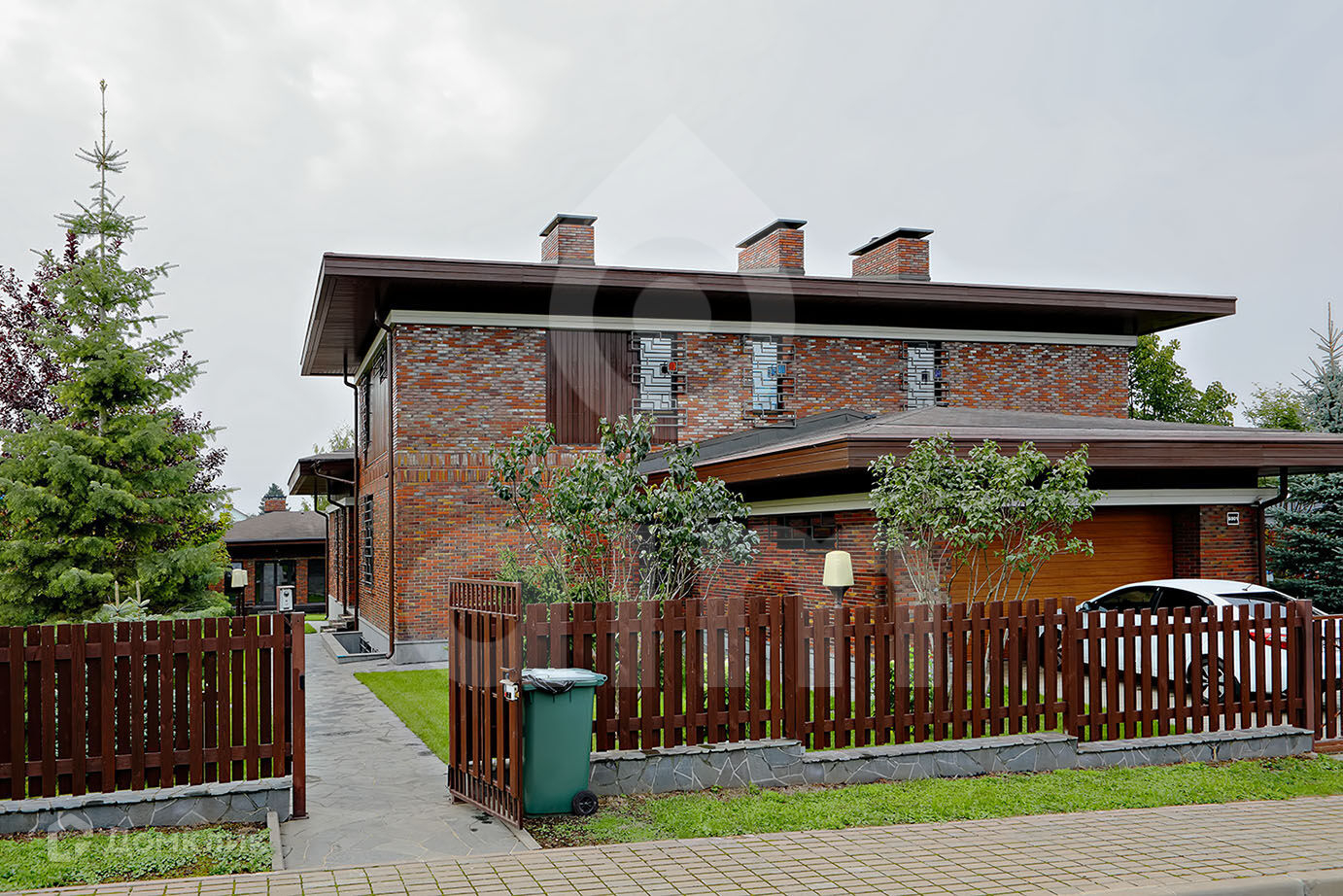 1-й этаж: прихожая, гардеробная, гостевая спальня с с\у, кабинет, гостиная, кухня, гостевой с\у, кладовая, спальня с ванной комнатой и гардеробной, гараж, лифт;