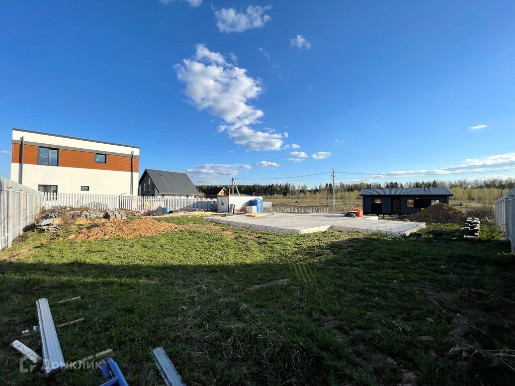 На территории есть детская площадка. На участке есть фундамент. Огорожен забором с трех сторон.
