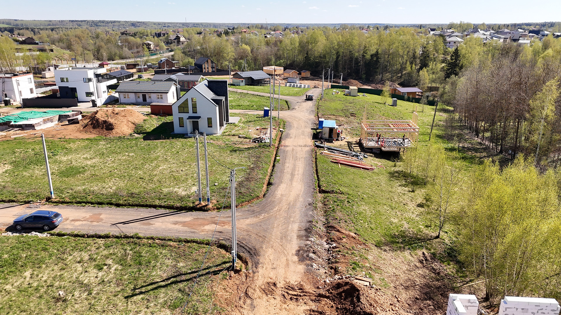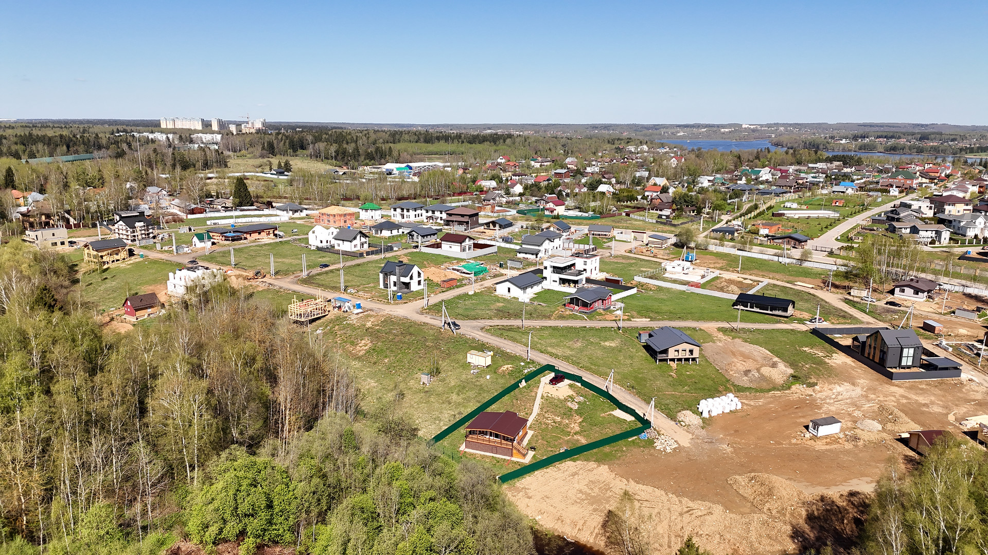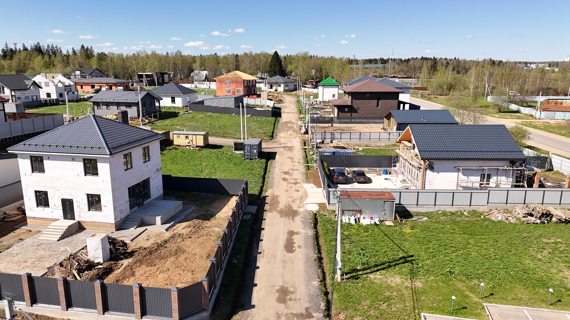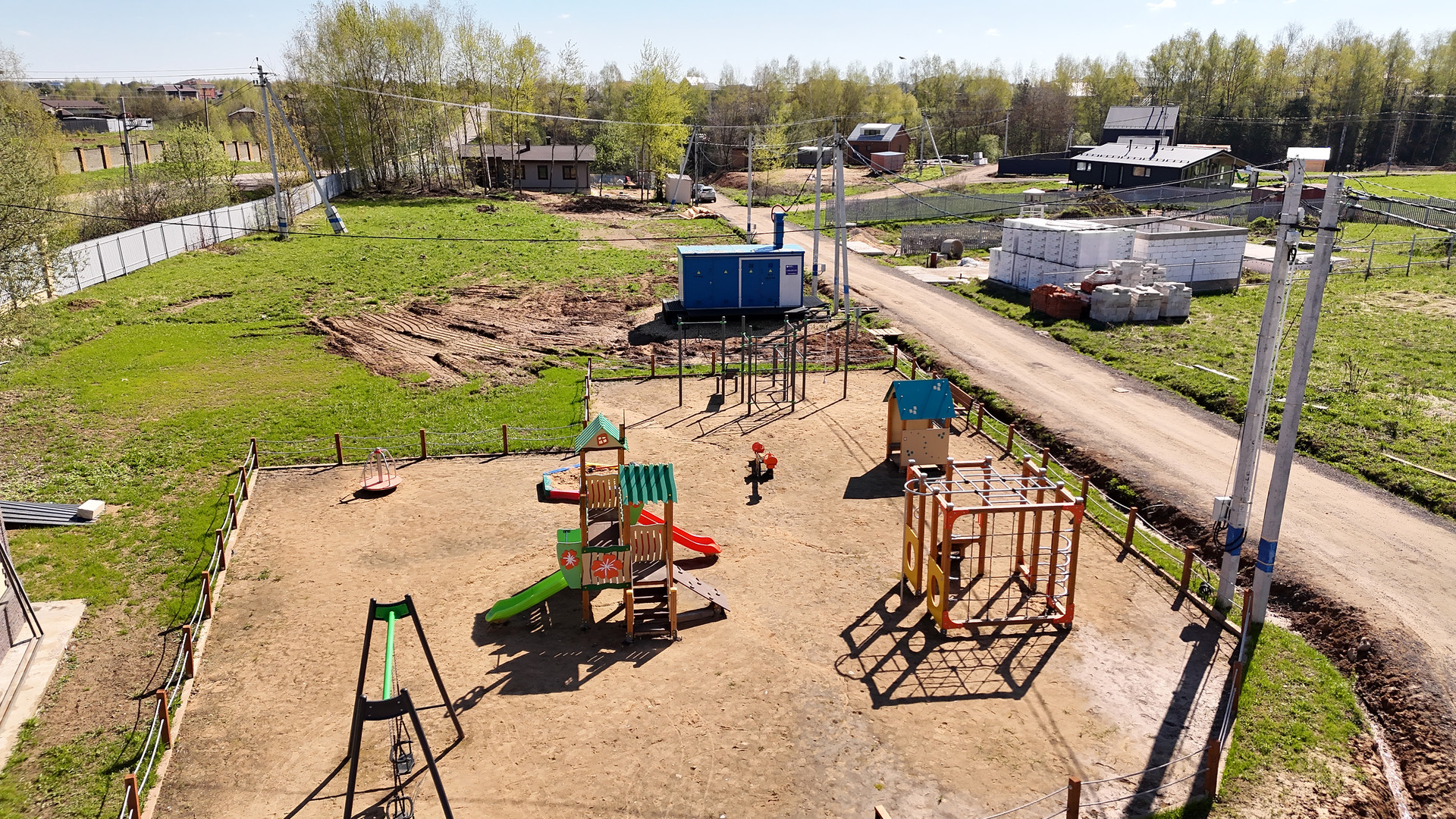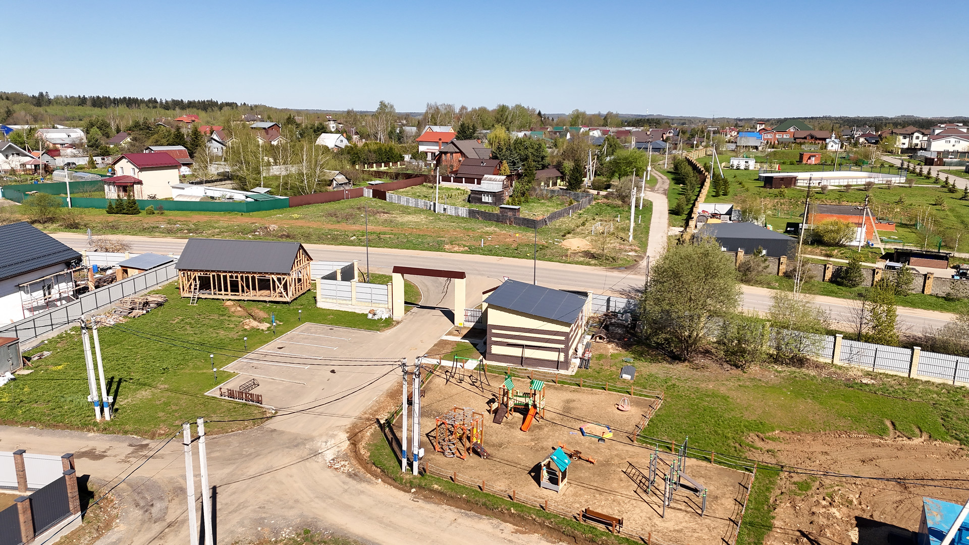 Участок ровный, электричество подведено, газ. В поселке освещение, охрана, построена детская площадка, хорошие дороги.