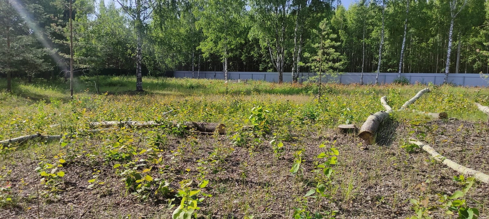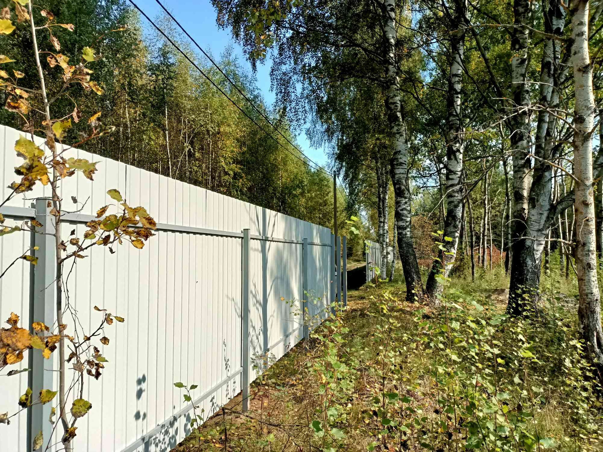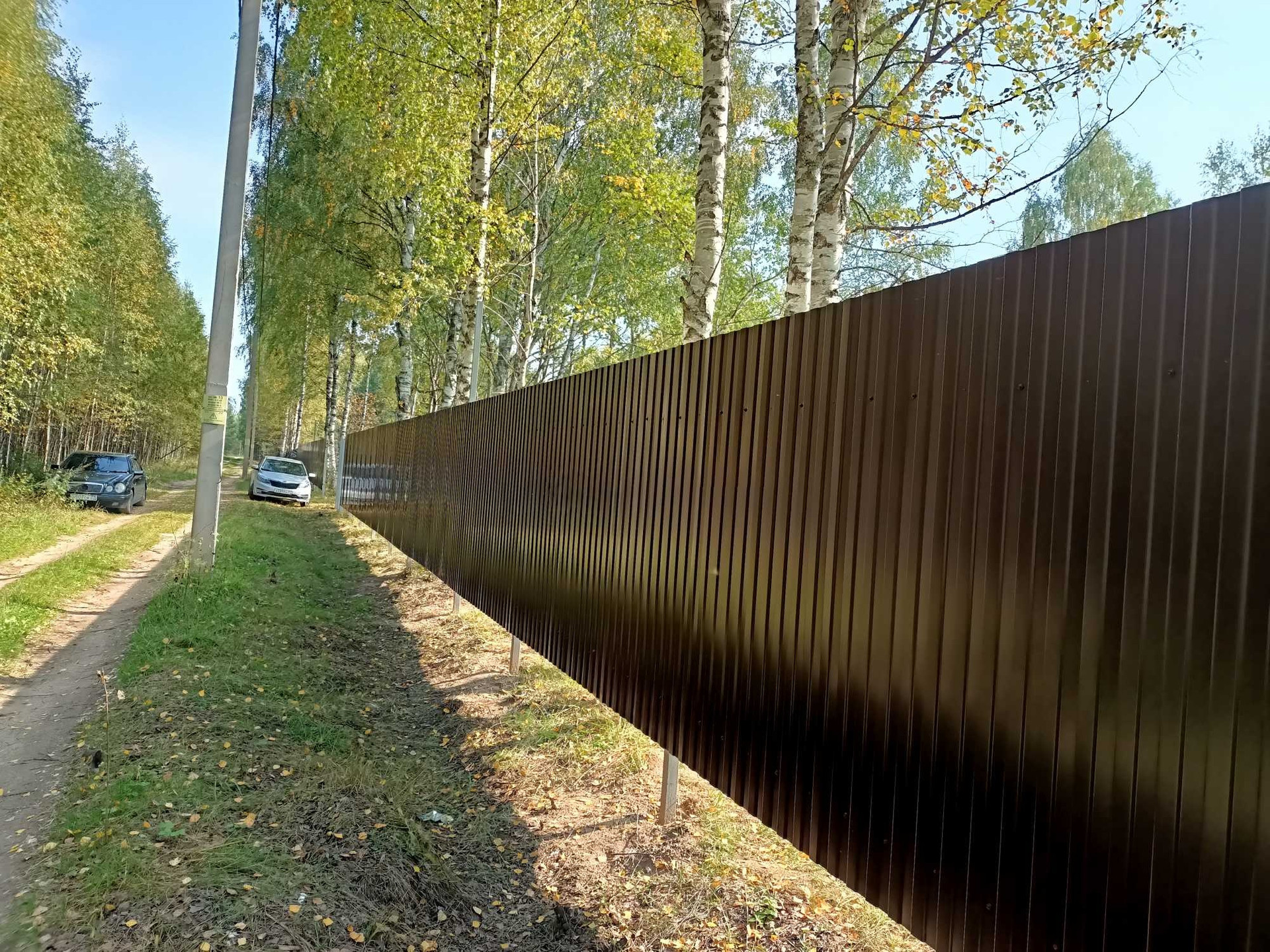 Со стороны дороги установлен забор из профлиста. к Волге забора нет, участки обозначены лагами.