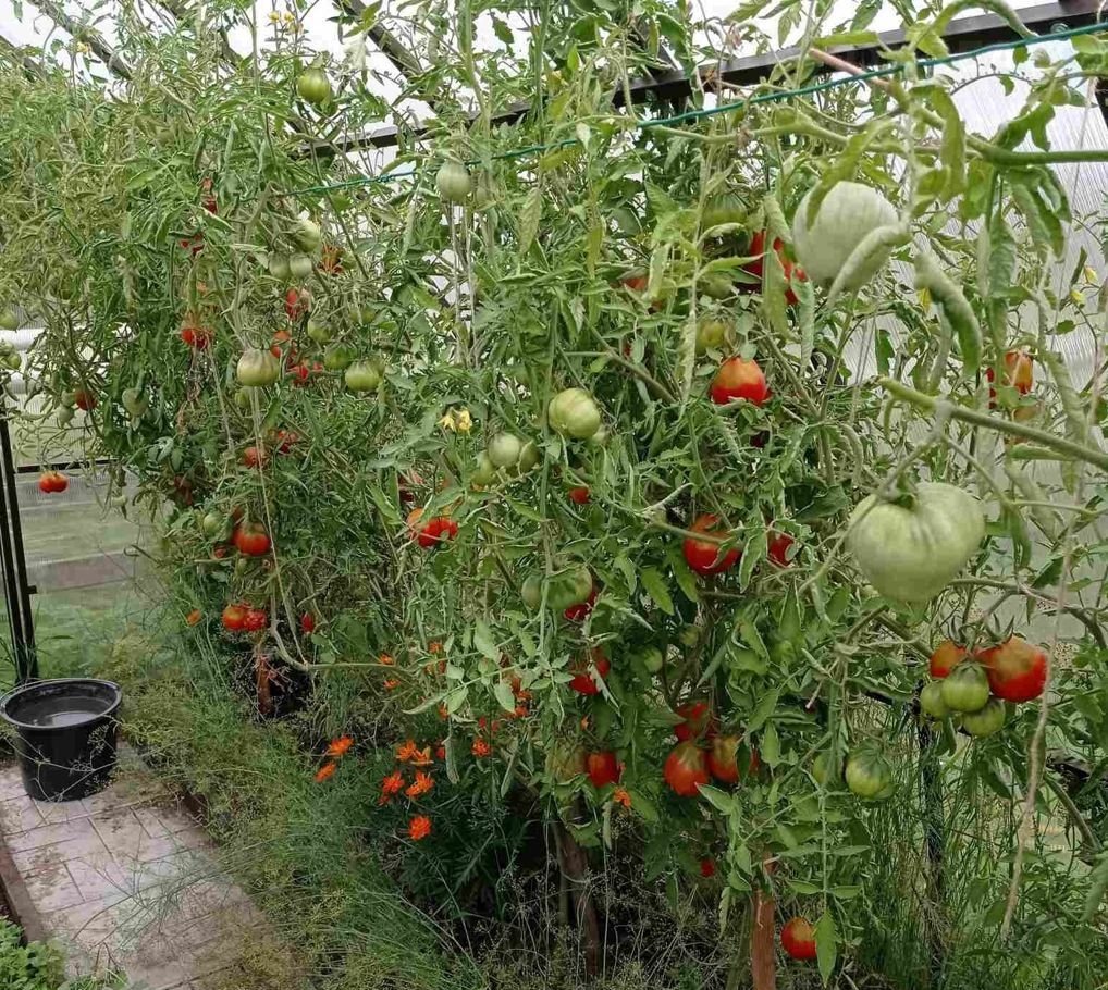 Участок ровный, правильной формы, полностью облагорожен (три парника, грядки, кустарники, плодово-ягодные растения и деревья).