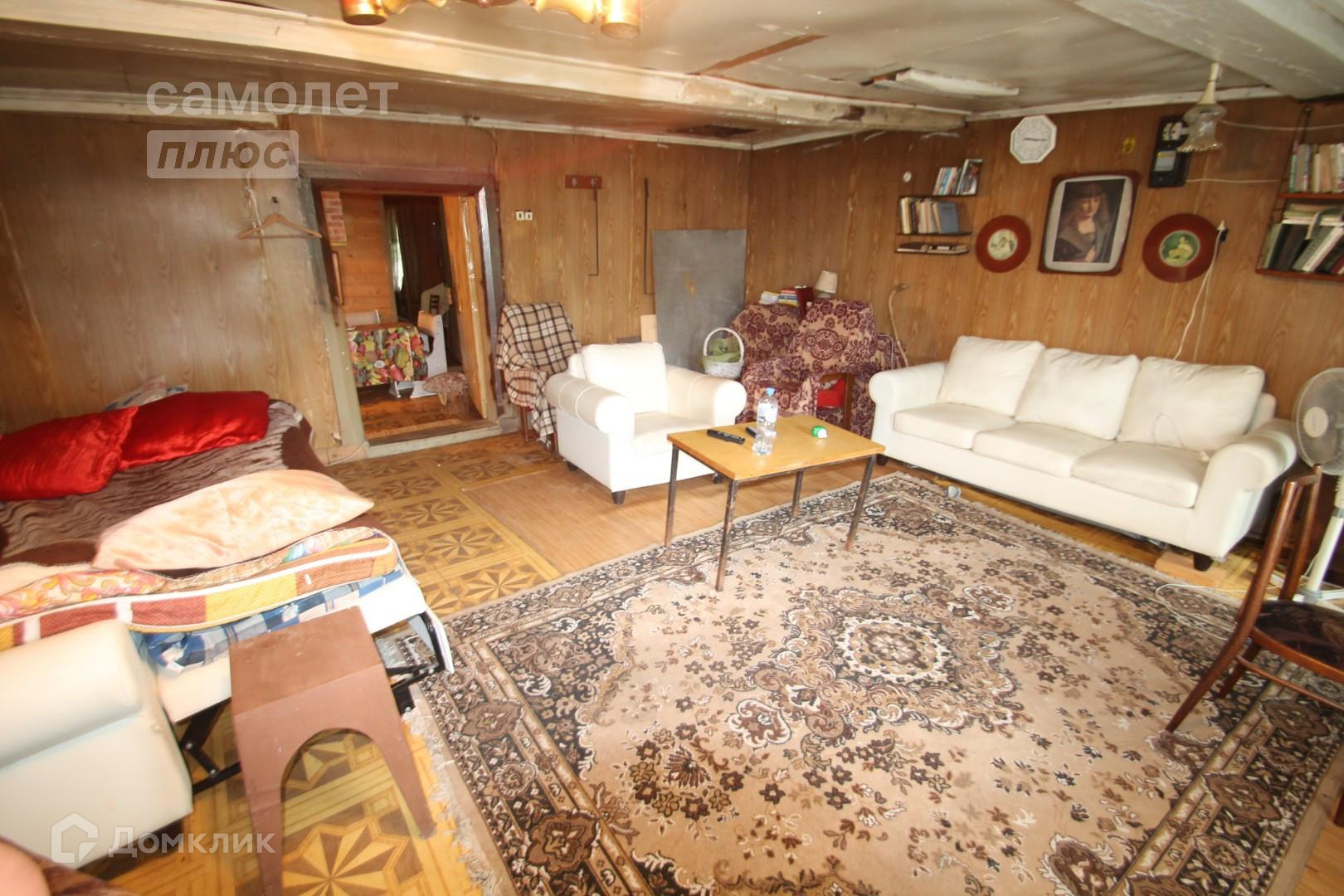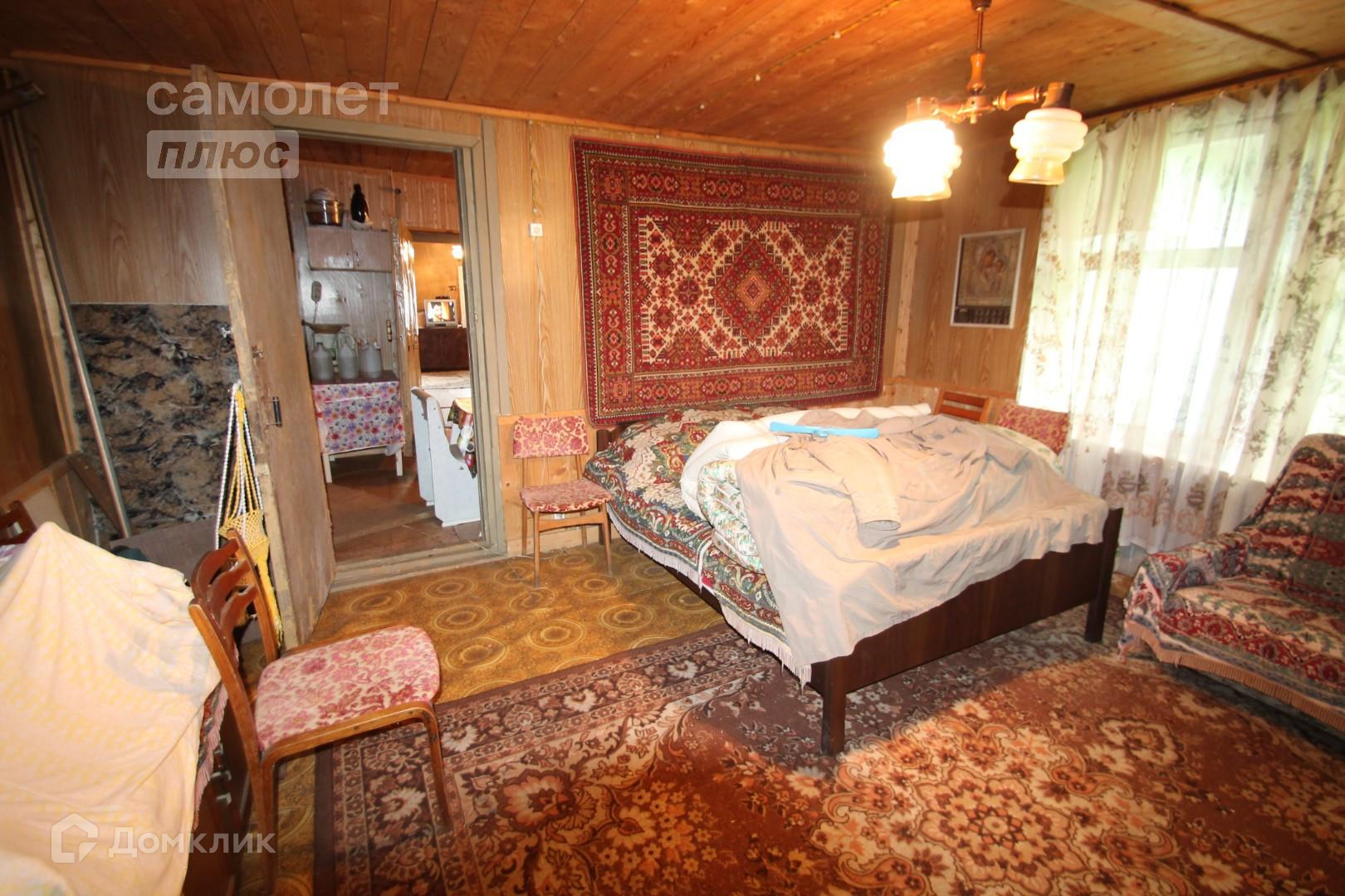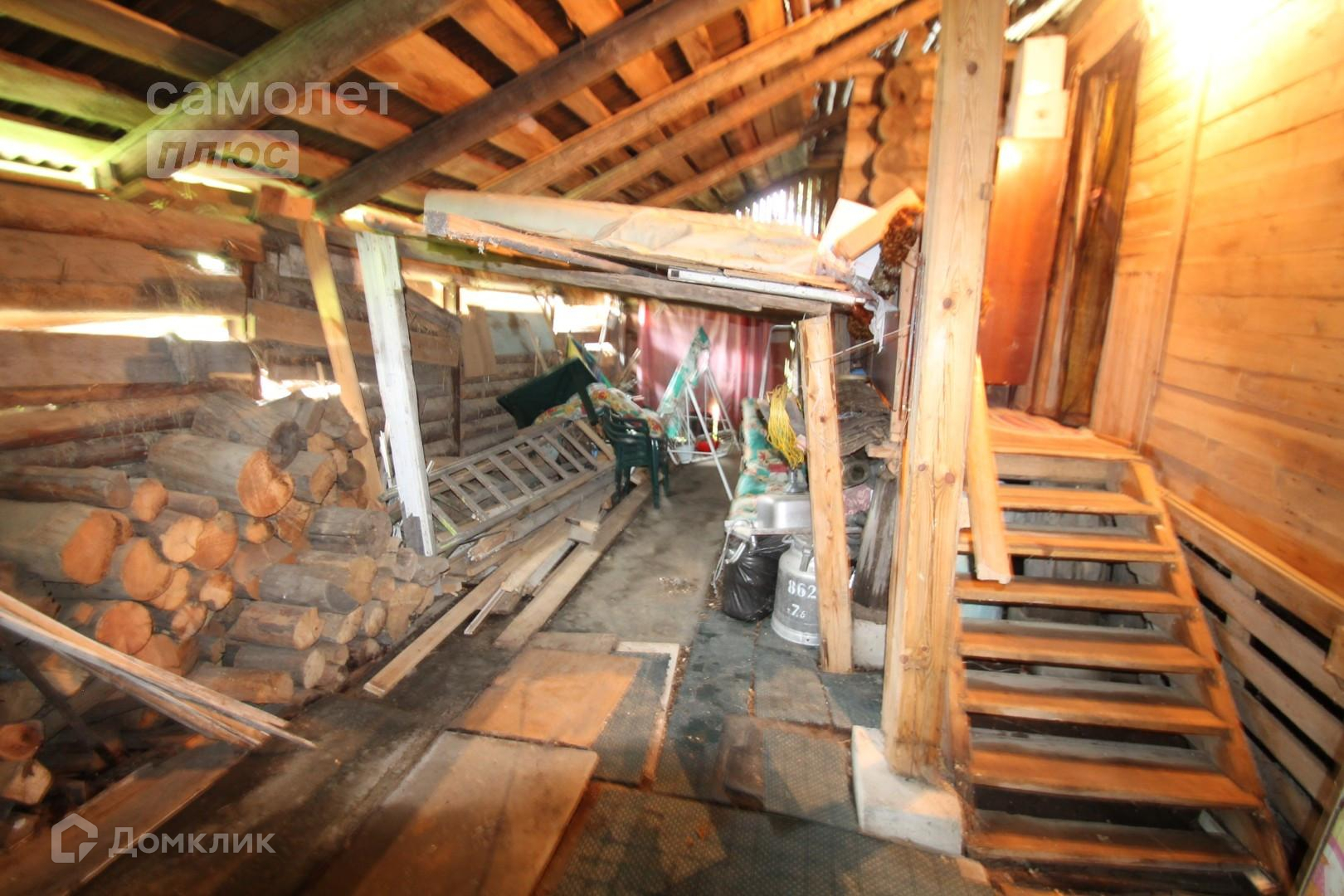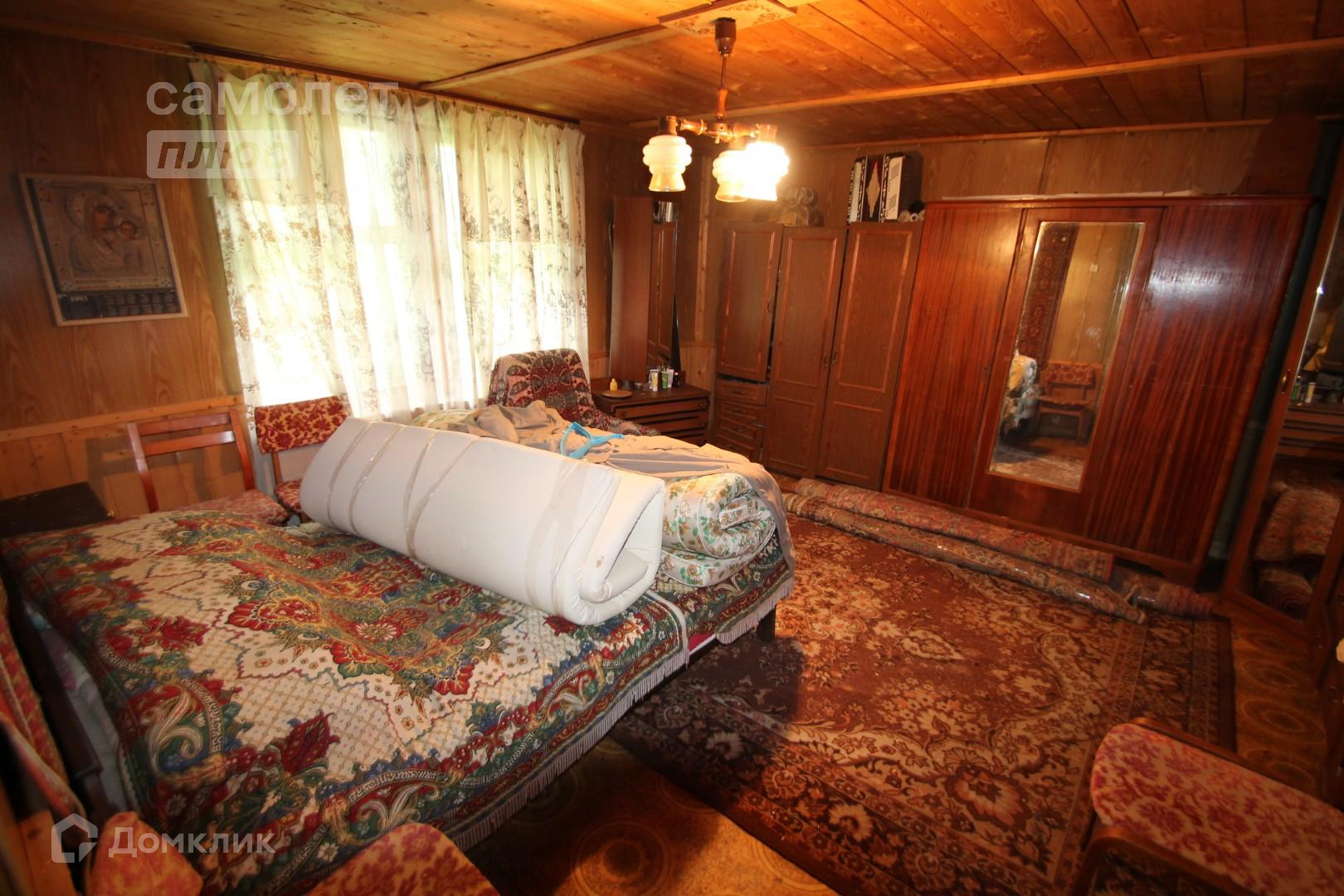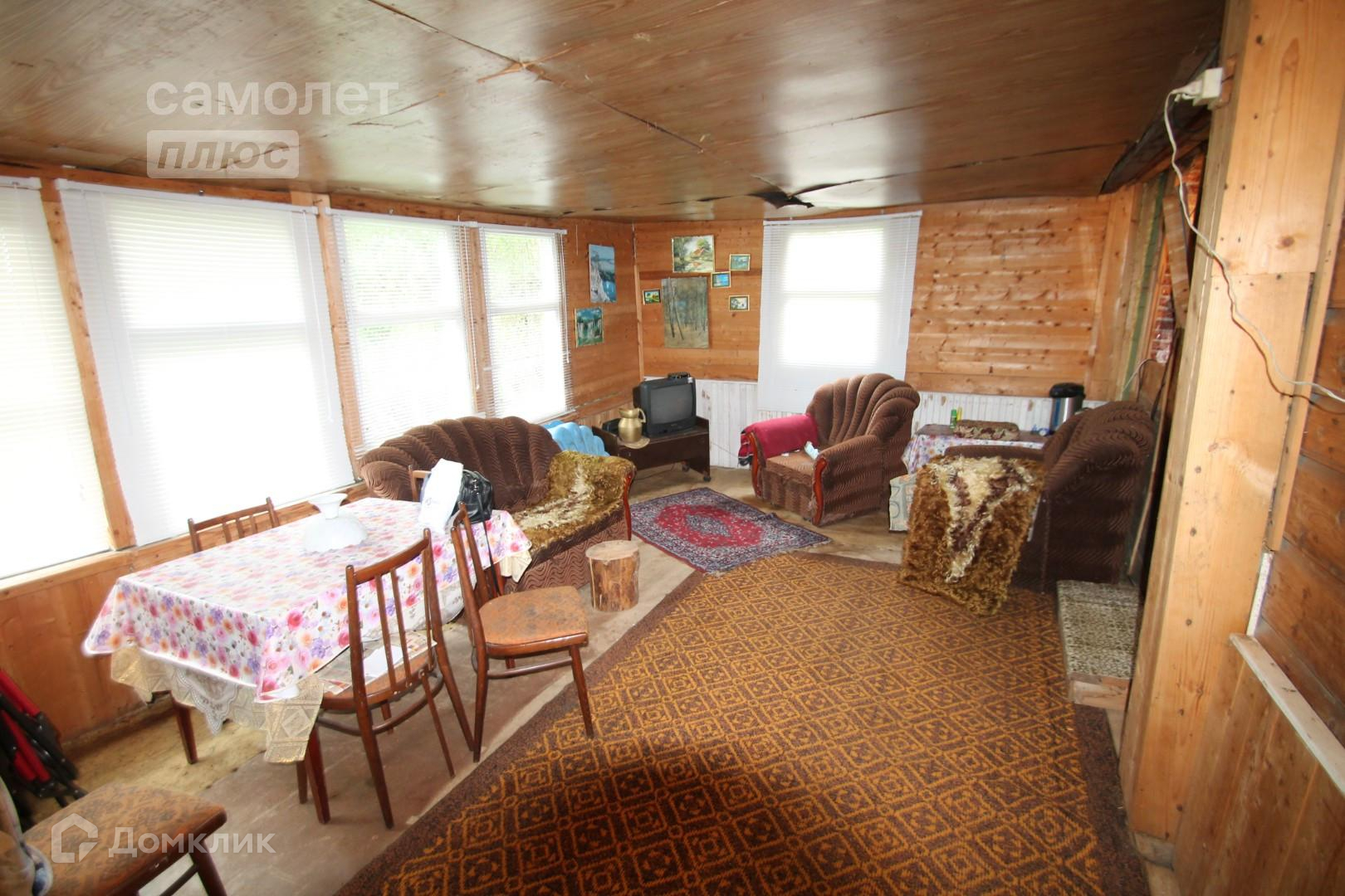 Общая площадь дома 100 кв.м из бревна. Просторная терраса, кухонное помещение, две спальные комнаты, из дома выход в овин. Дом требует ремонт.