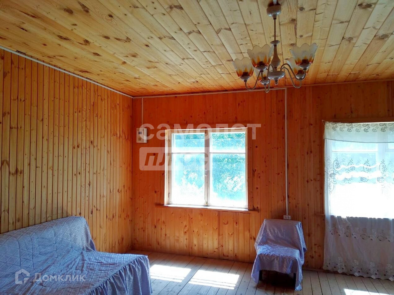 Жилой дом, общей площадью 50 кв. м, из хорошего, крепкого бревна, новый кирпичный фундамент, снаружи и внутри обшит вагонкой, крыша покрыта шифером, оконные рамы деревянные, полы деревянные.