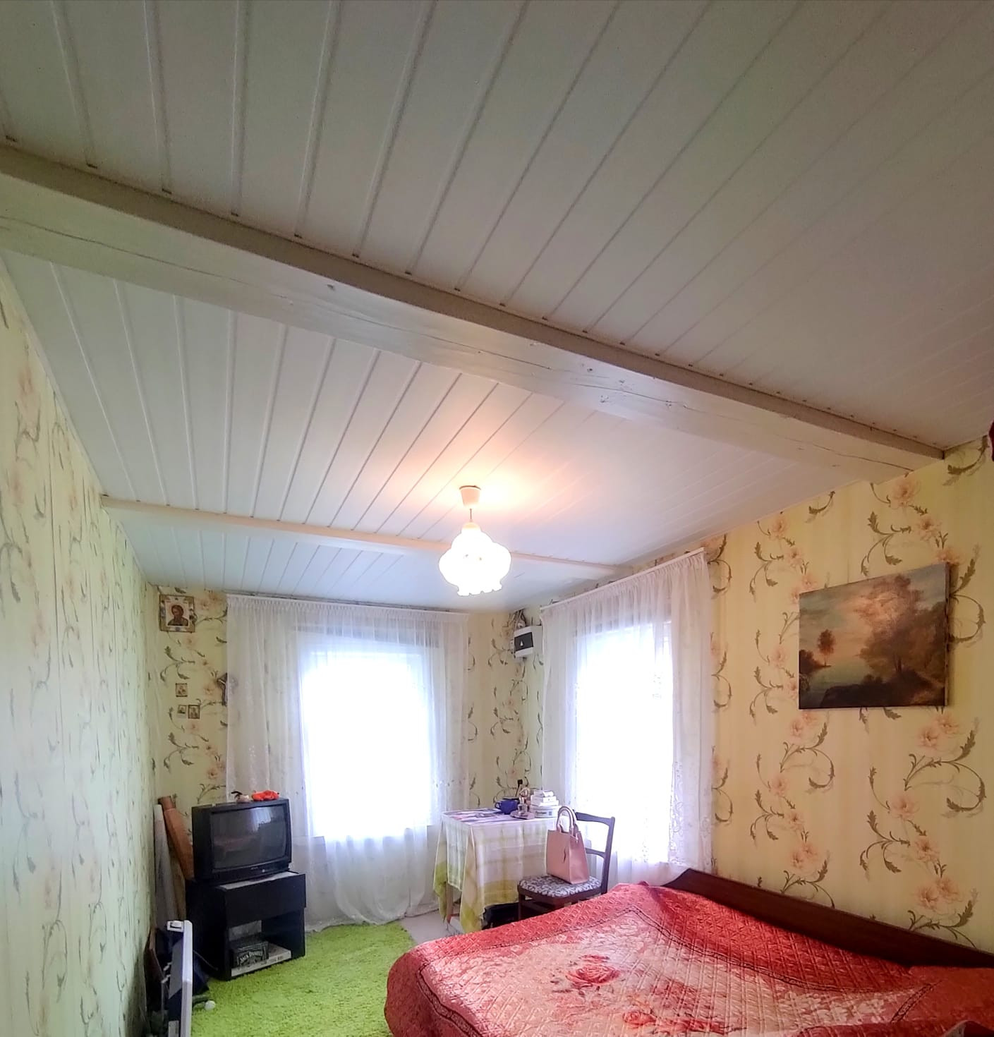 Этаж утеплен, напольное покрытие доска. Окна деревянные. Крыша шифер.
