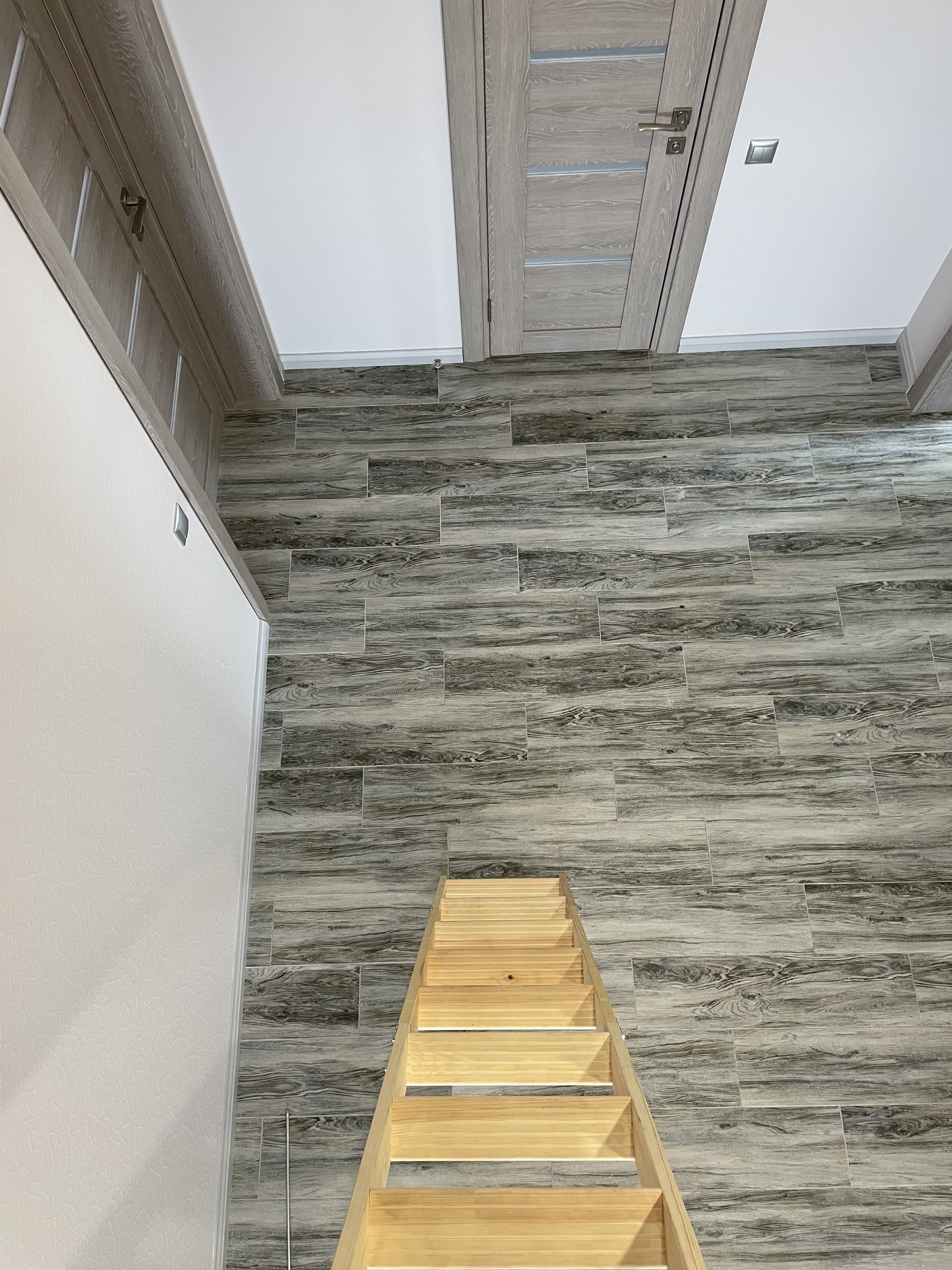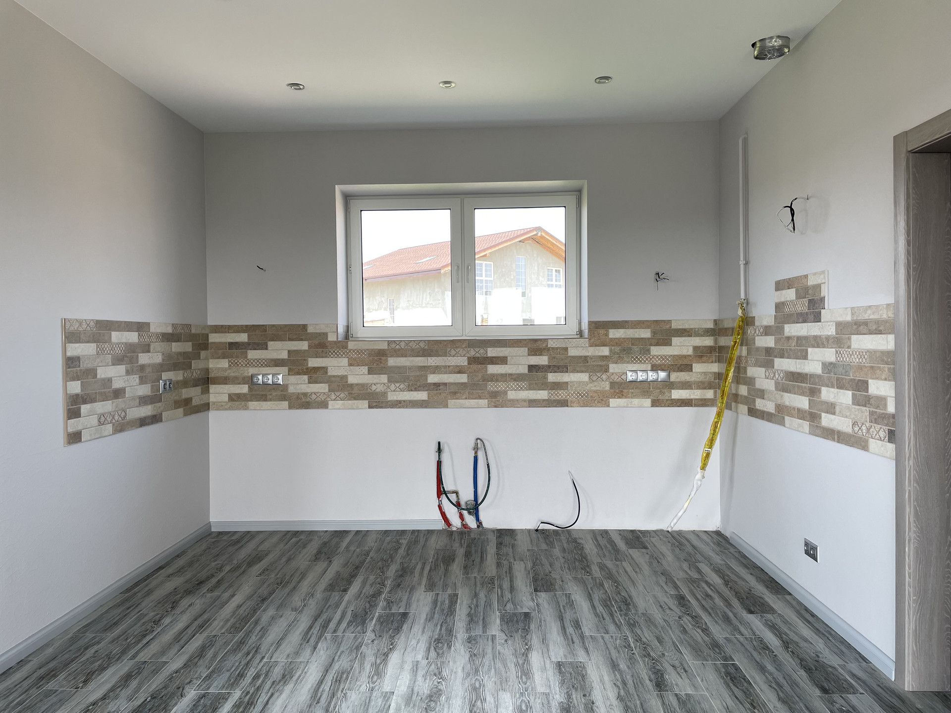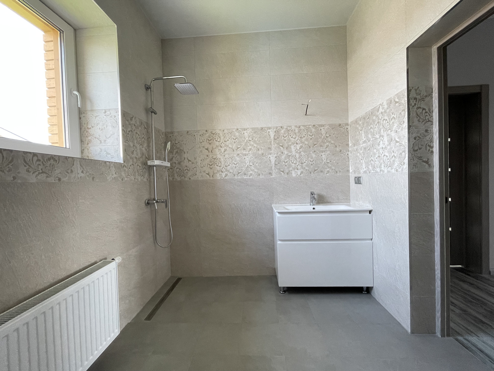 Пол с водяным подогревом - уложен керамогранит.