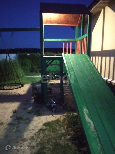 На участке: парковка, беседка, место для барбекю, садовые качели, большая детская площадка. Плодовый сад и ягодные кустарники.