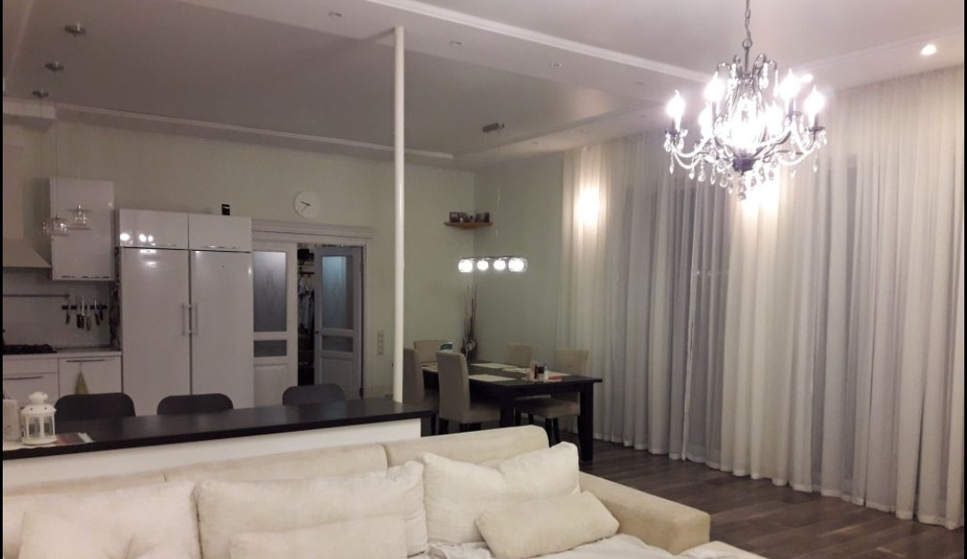 Дом оригинальной планировки, имеет просторную гостиную, четыре спальни, кухню, два санузла, гардеробную. Заведены и работают все коммуникации-вода, канализация, отопление (магистральный газ). Ремонт качественный, остаётся частично мебель, кухонный гарнитур. Есть гараж с автоматическими воротами. Территория посёлка охраняется.