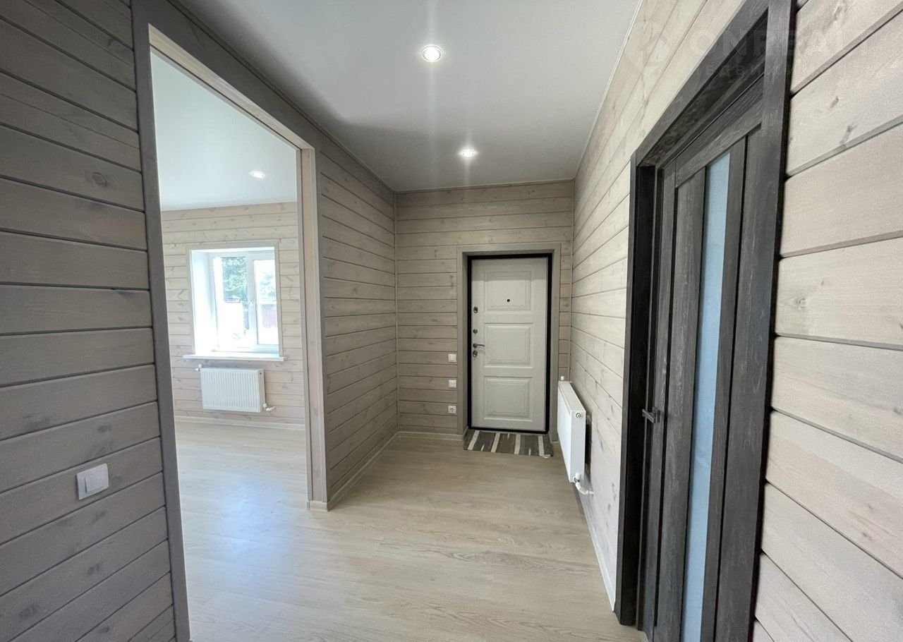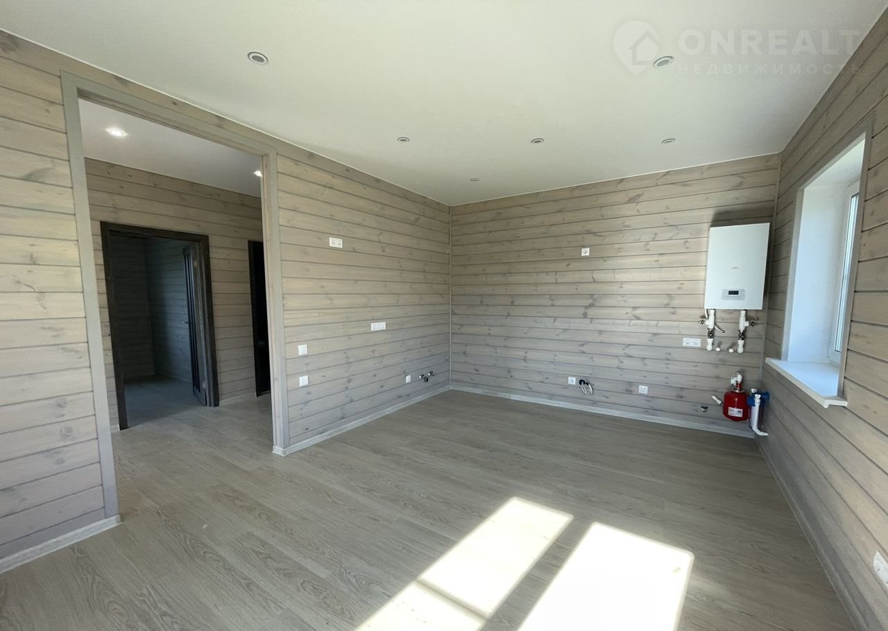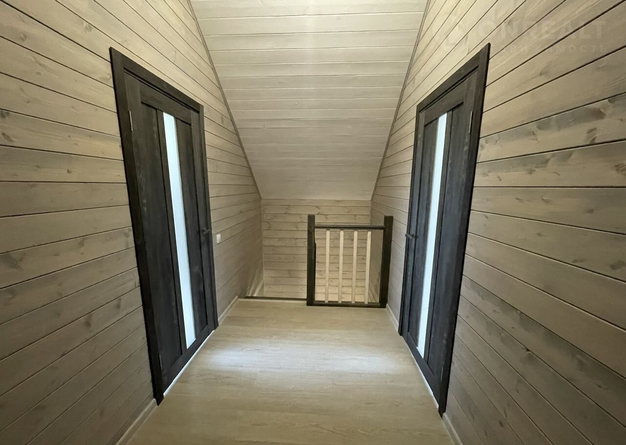 Внутренняя отделка в доме "под ключ" из имитации бруса, ламинат, межкомнатные двери, входная дверь с терморазрывом, натяжные потолки, обеспечение сантехникой санузла.
