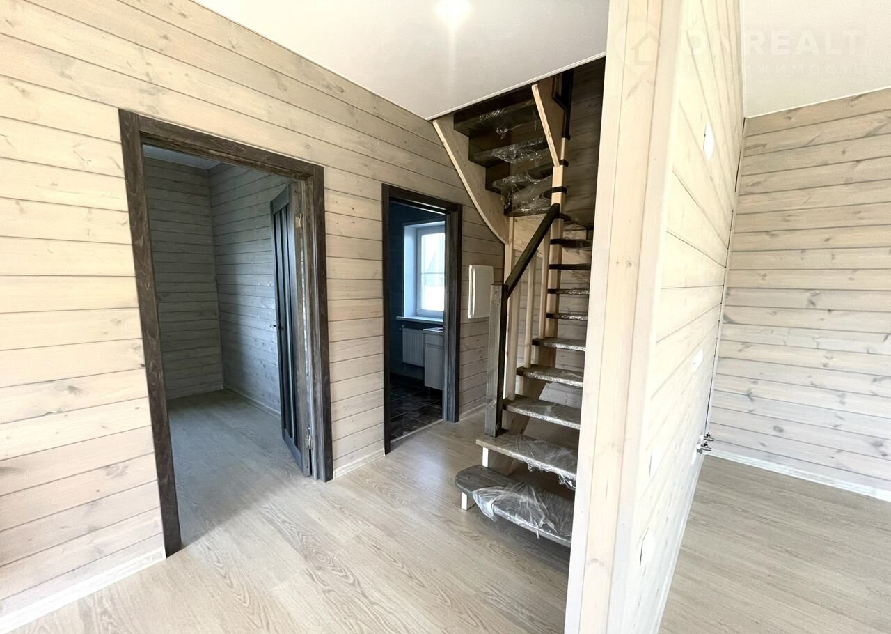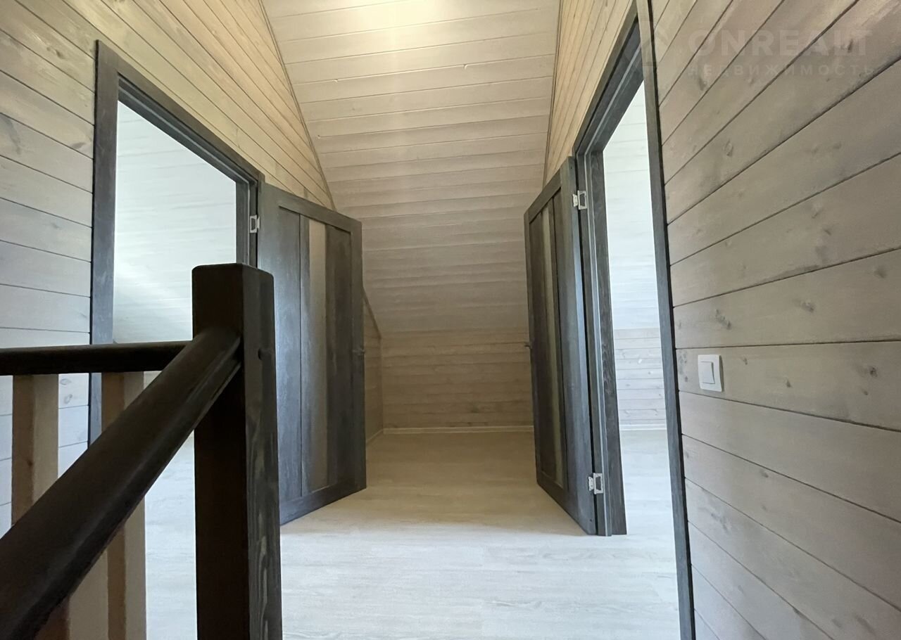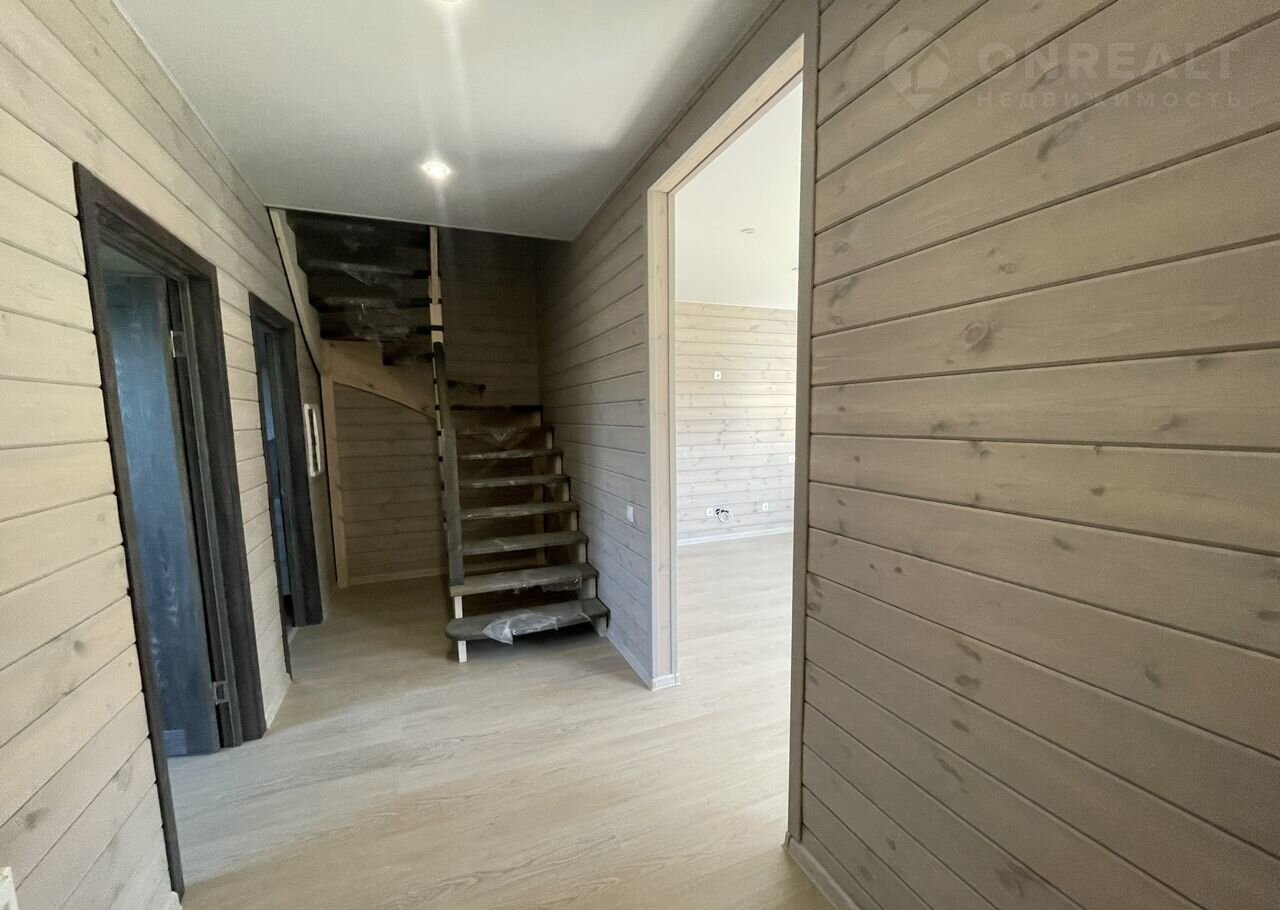 Внутренняя отделка в доме "под ключ" из имитации бруса, ламинат, межкомнатные двери, входная дверь с терморазрывом, натяжные потолки, обеспечение сантехникой санузла.