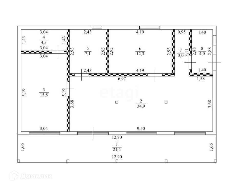 1-этажный дом, 108 м2, на продажу в деревне Ходаево