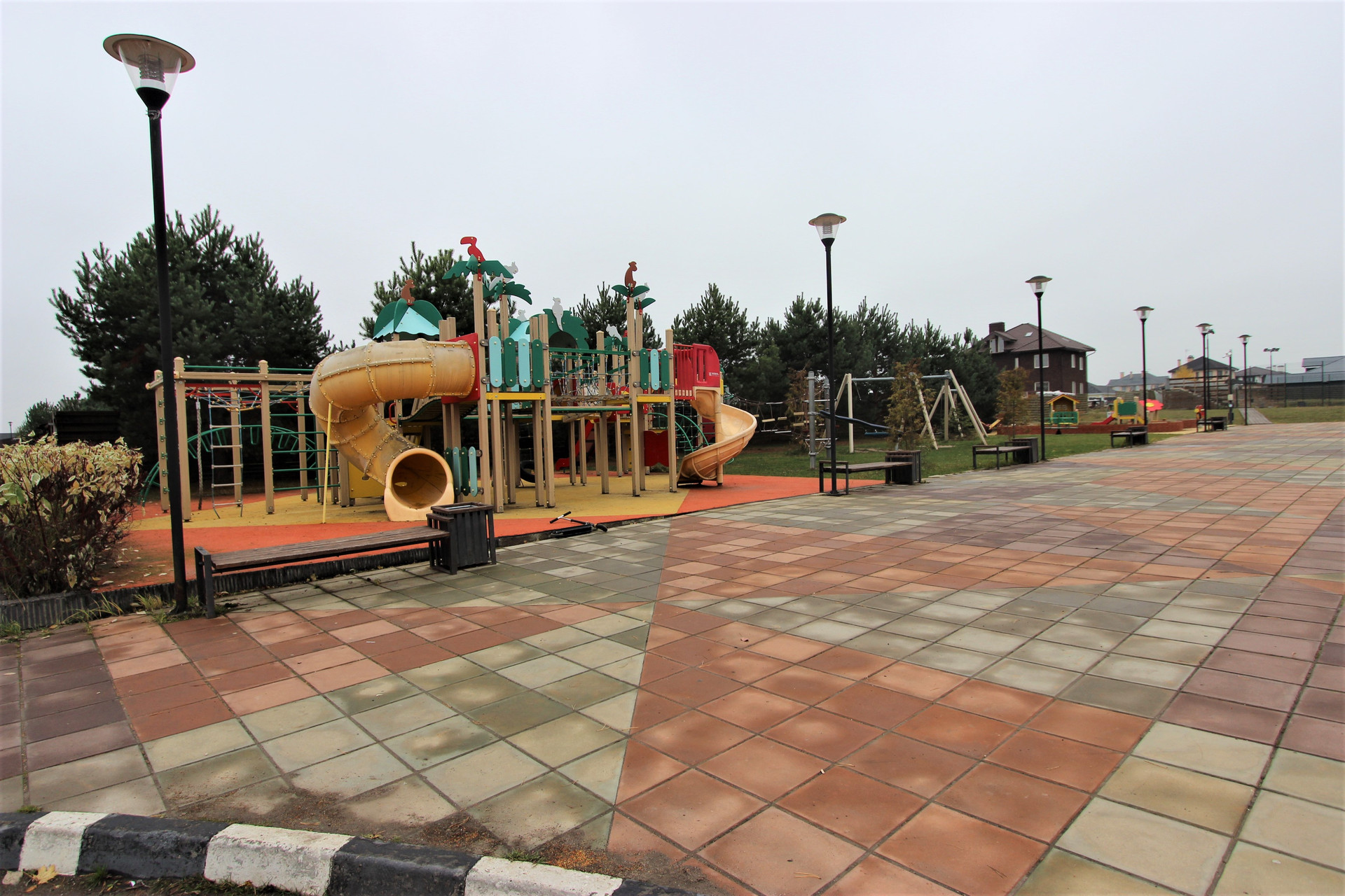 5. Коттеджный поселок имеет развитую инфраструктуру: детские игровые и спортивные площадки, футбольное поле, теннисный корт 36х18 м, оборудованы зоны отдыха и барбекю, пешеходные тротуары.